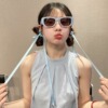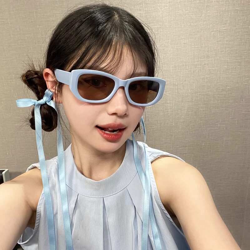 Y2K复古蓝色方形墨镜女2026新款多巴胺风圆脸拍照太阳眼镜高级感