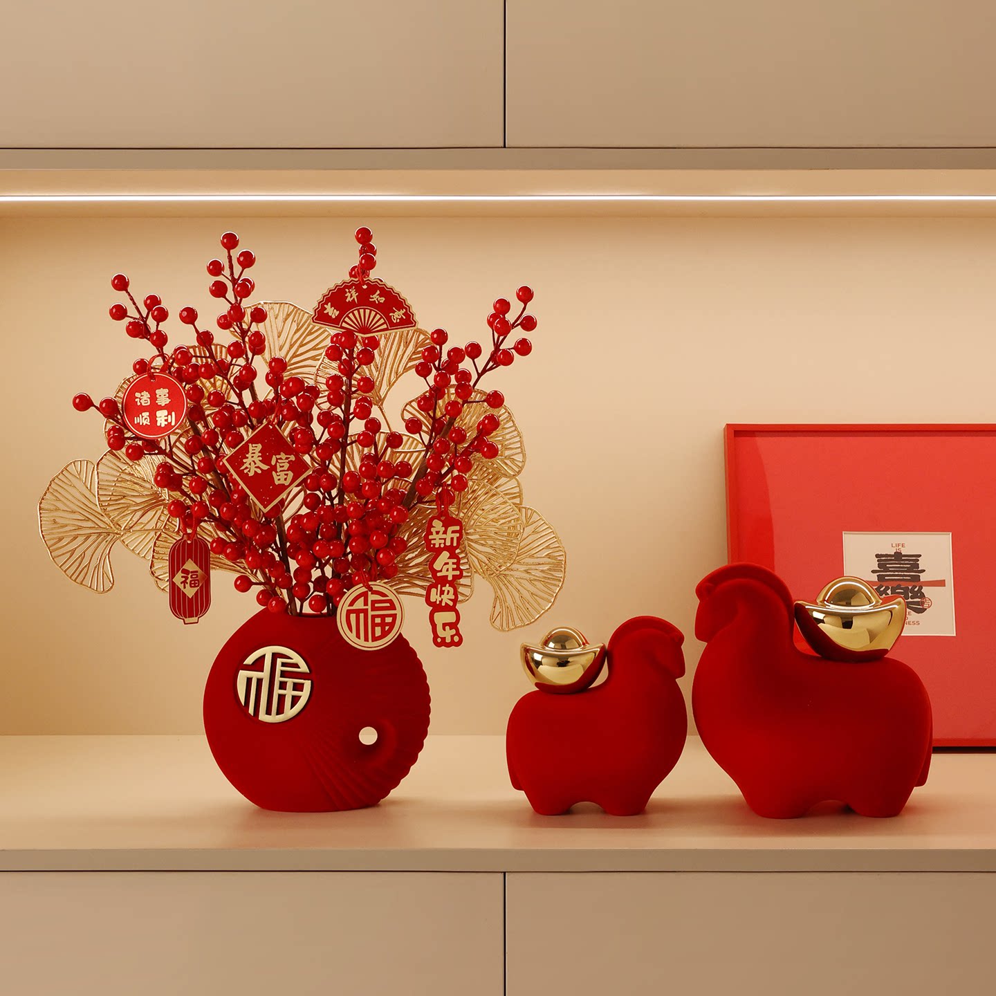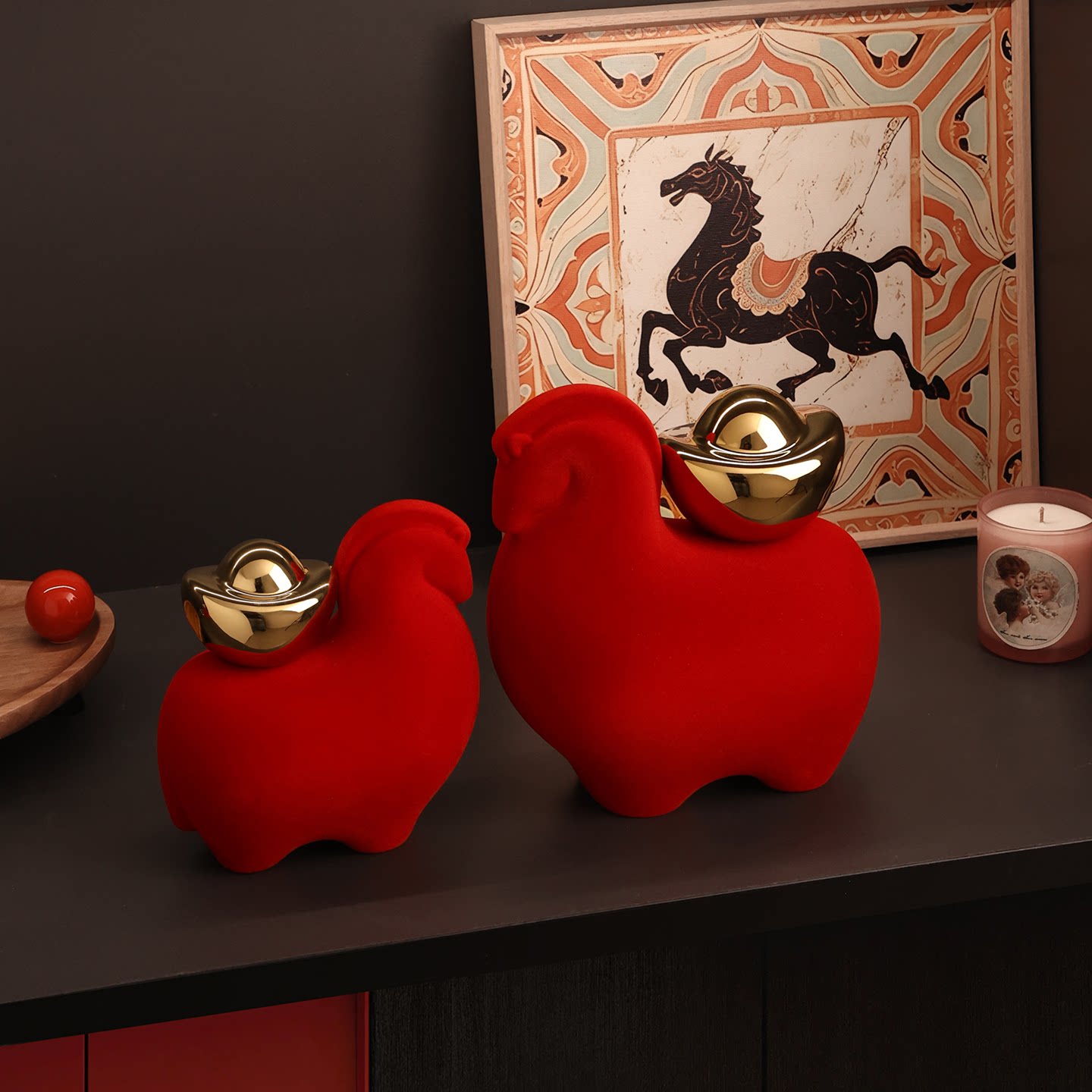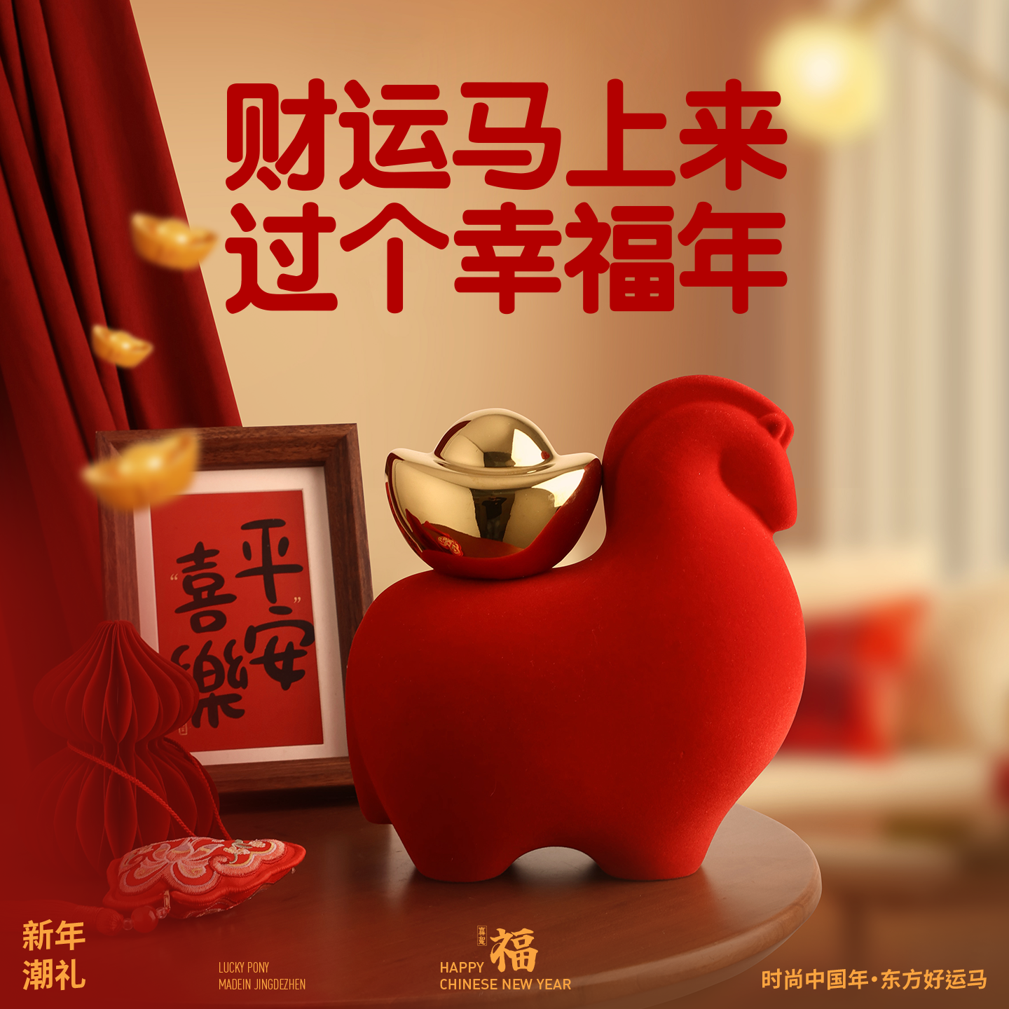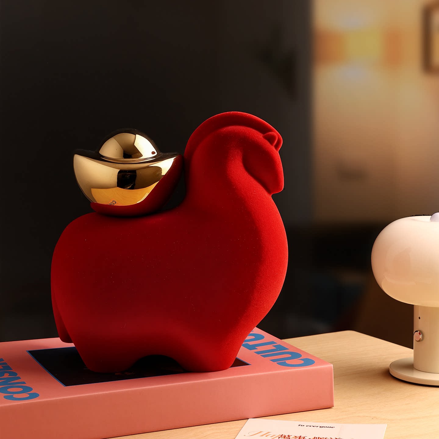 马年吉祥物新房装饰马上有钱摆件本命年礼物客厅红色植绒乔迁礼品