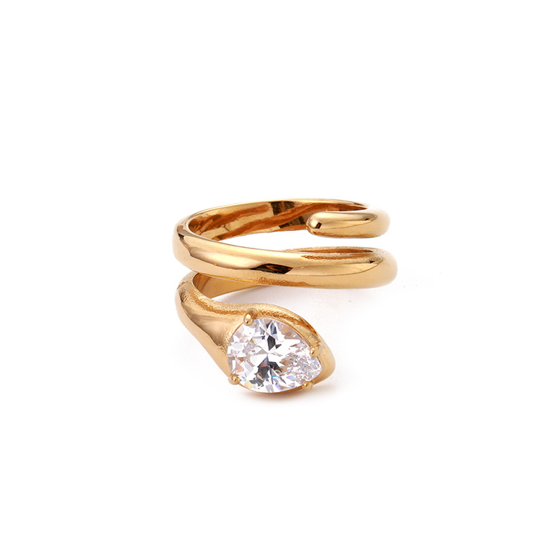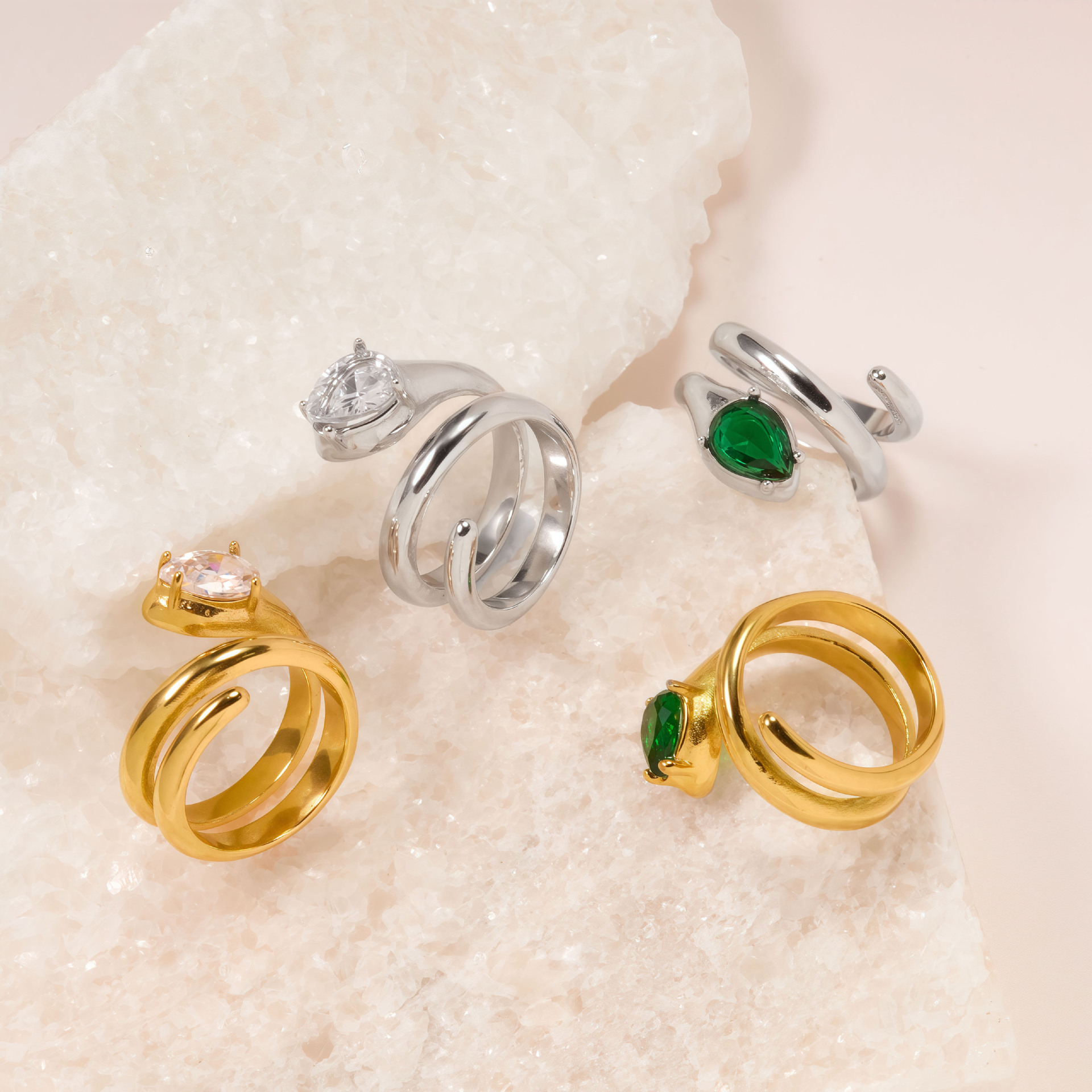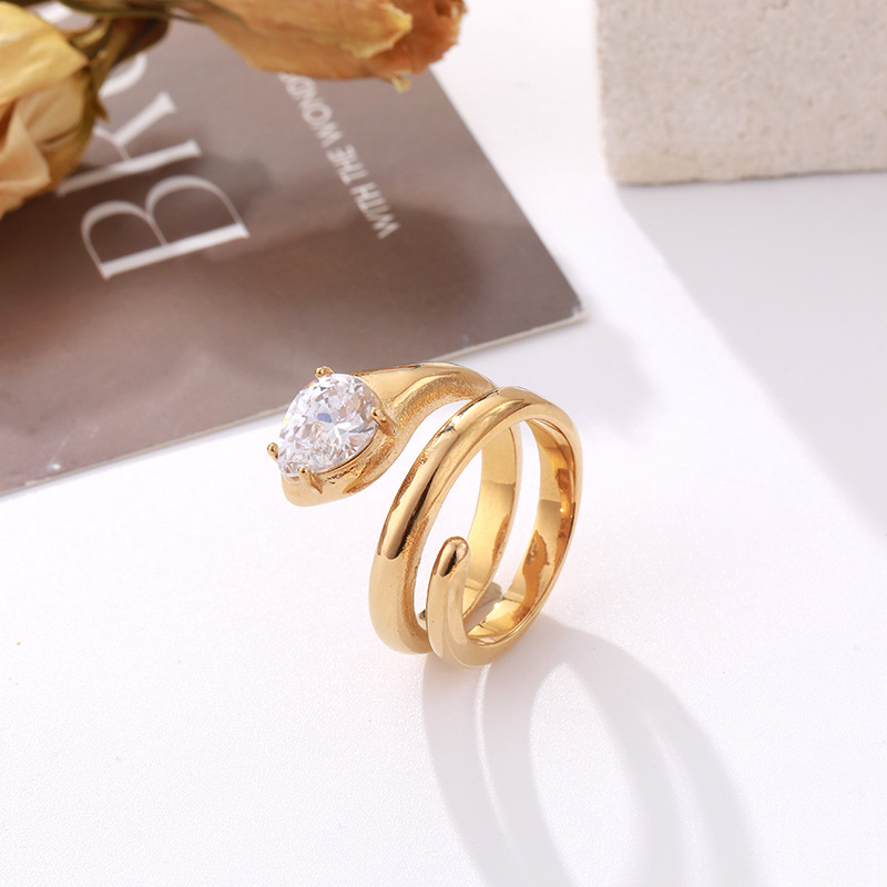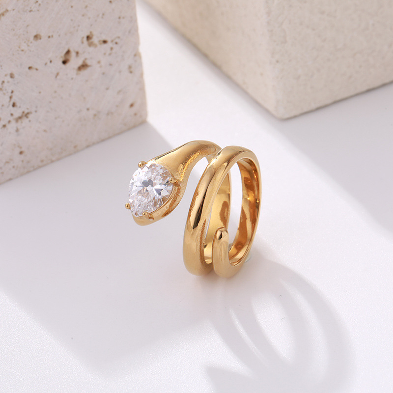 欧美时尚轻奢镶钻蛇戒指韩版简约小众设计钛钢镀金指环中指食指女
