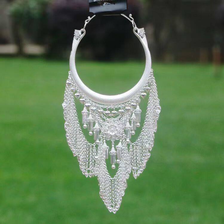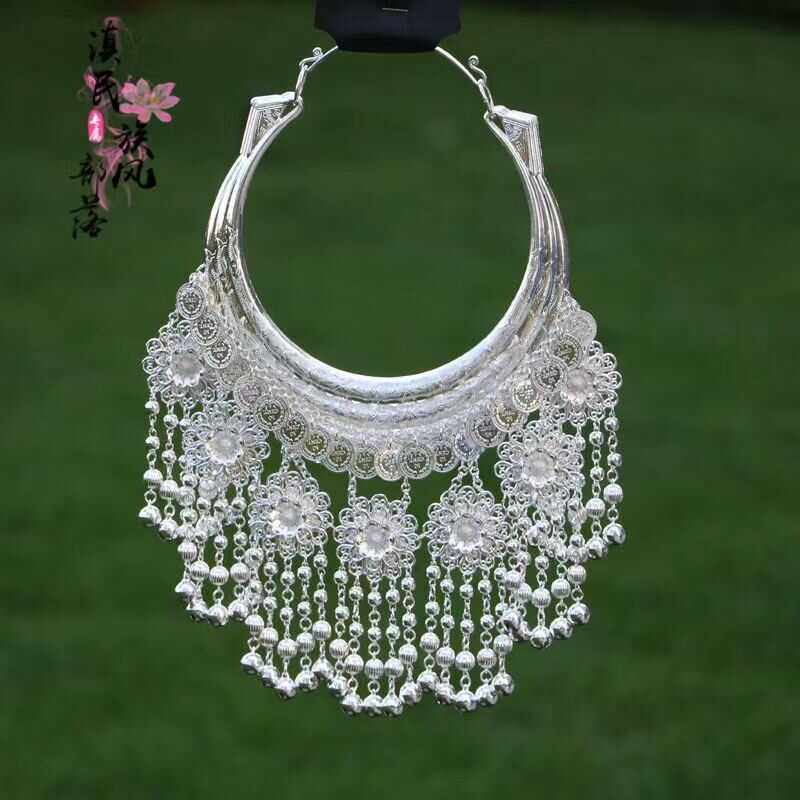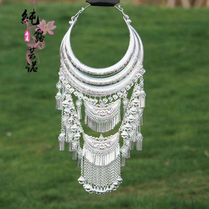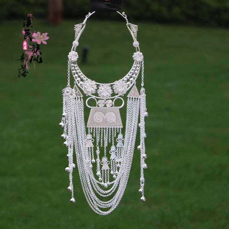 新款滇民族风特色白色苗银饰品原创夸张中国风长款流苏苗银项圈
