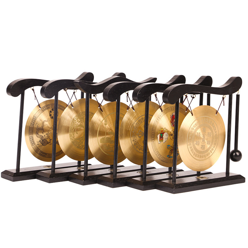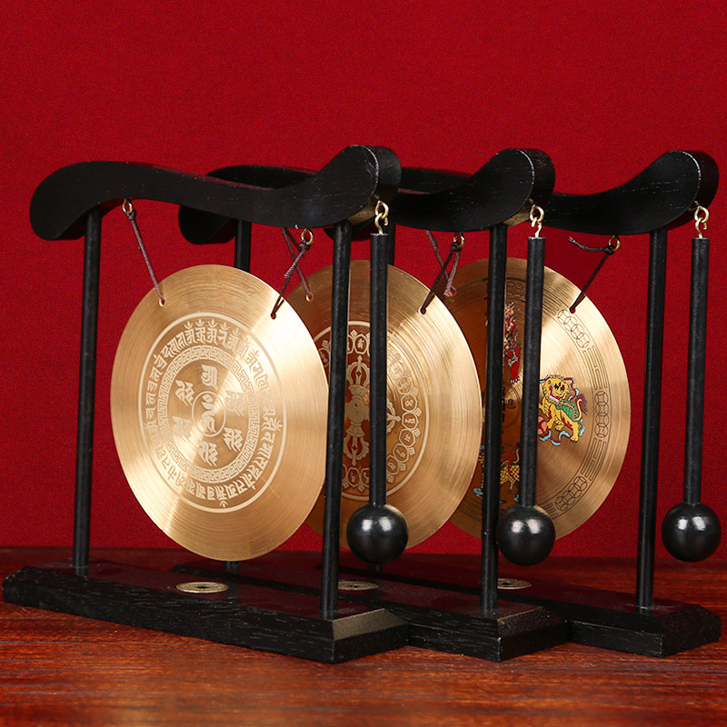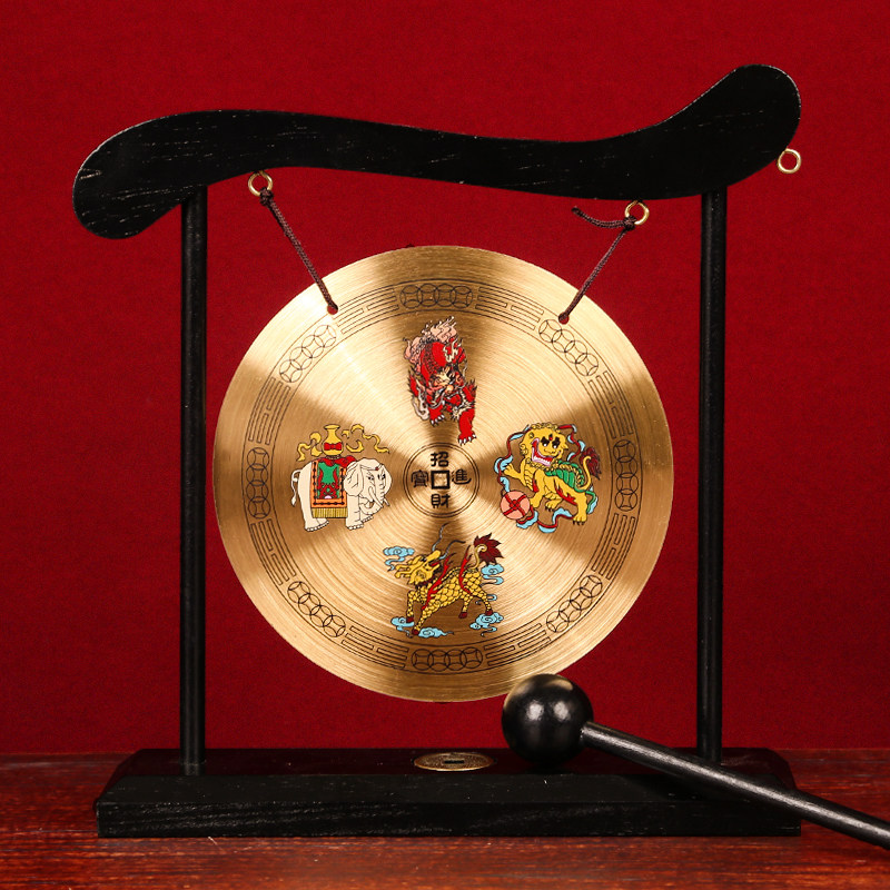 六帝铜锣摆件招财四神兽六字真言铜锣鼓平安健康客厅化五黄装饰