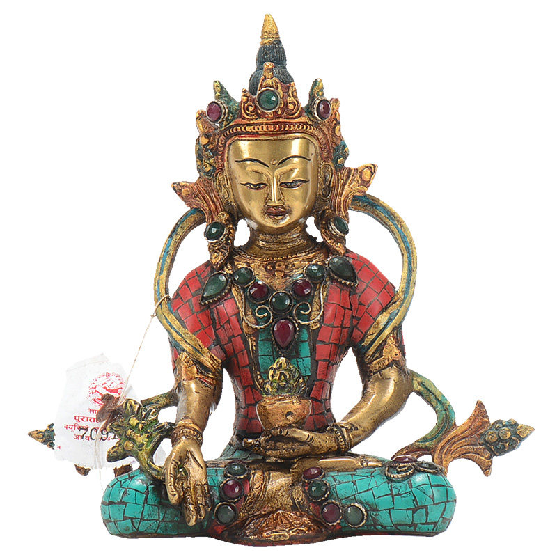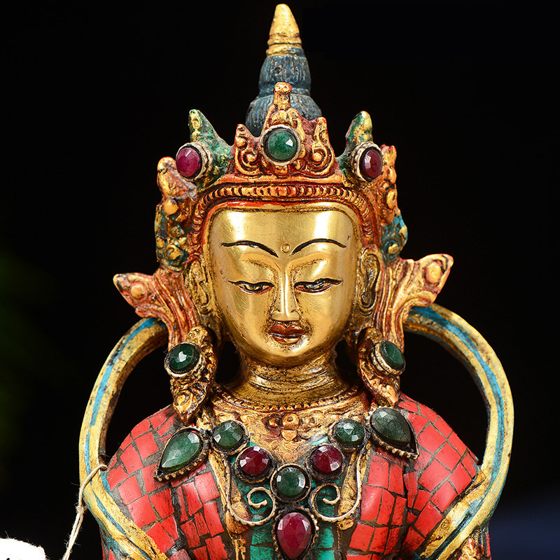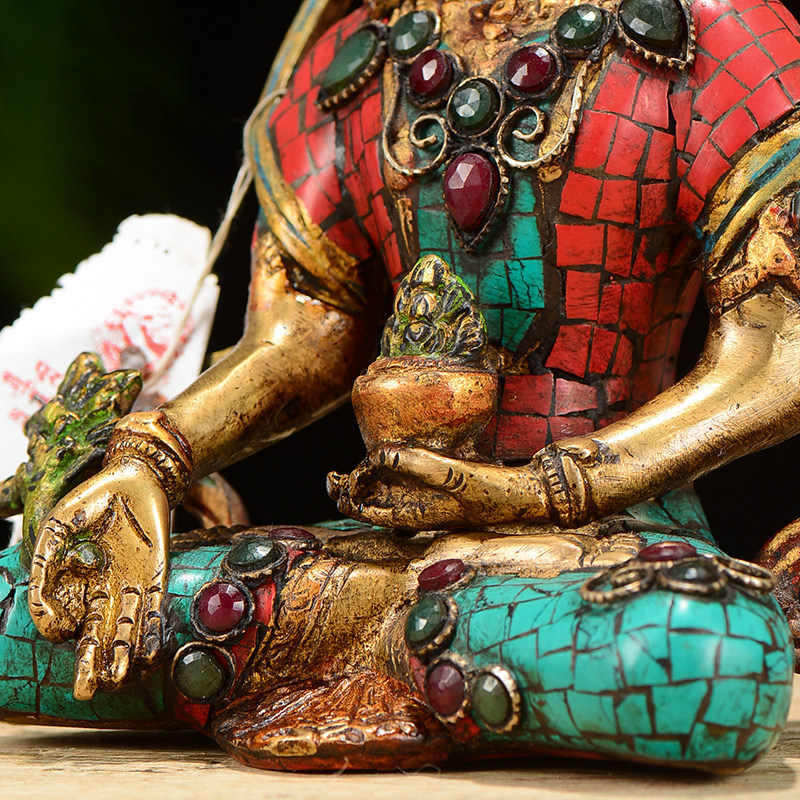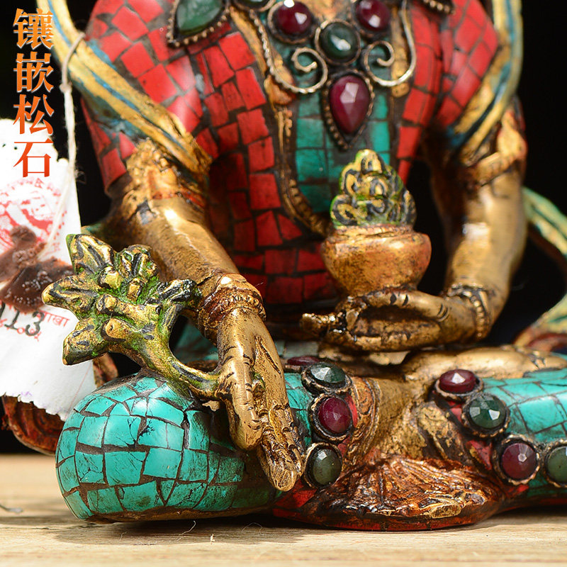 欧斯特 药师佛中式摆件尼泊尔手工做旧镶松石7寸居家客厅玄关铜像