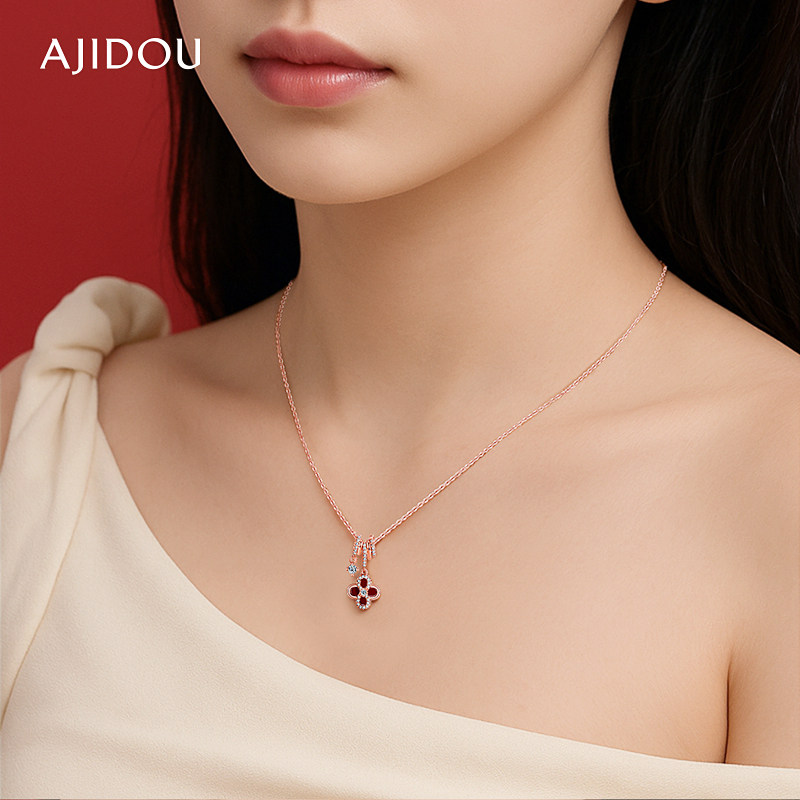 AJIDOU阿吉豆项链女款四叶草吊坠蛇年本命红色颈链轻奢精致锁骨链