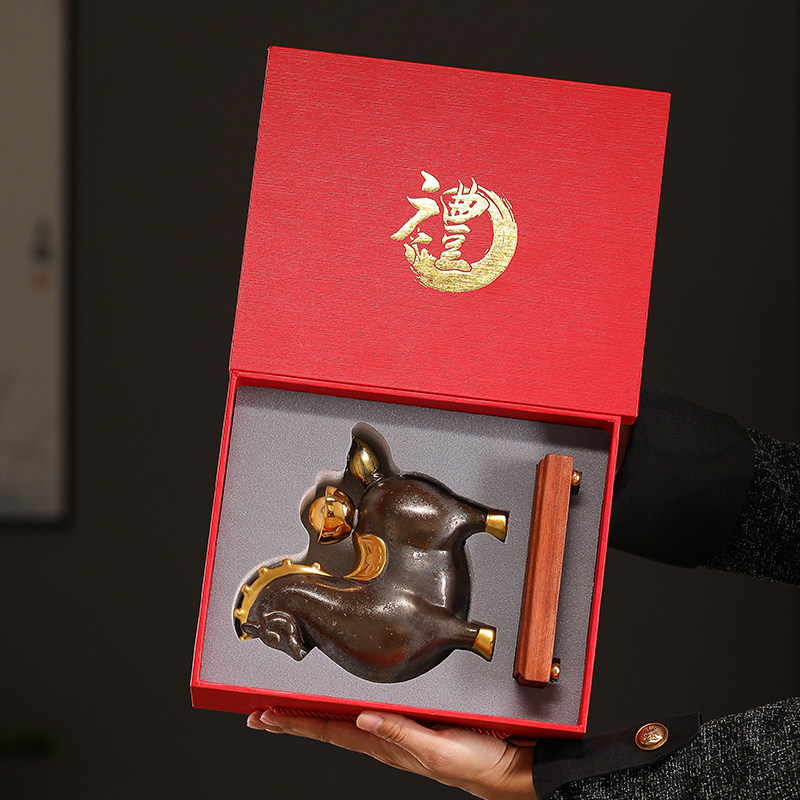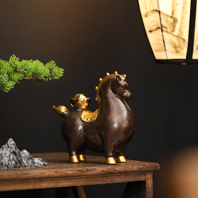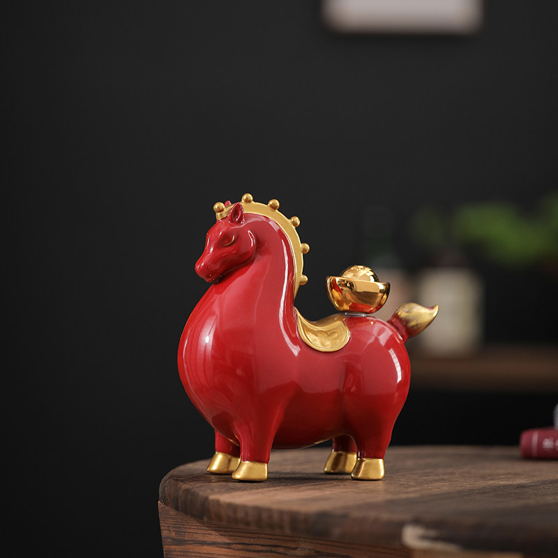 红色陶瓷马摆件家居装饰品360°旋转手指轻拨文创工艺品马上有钱