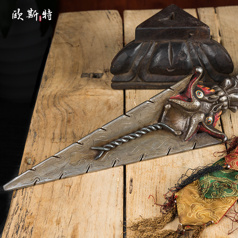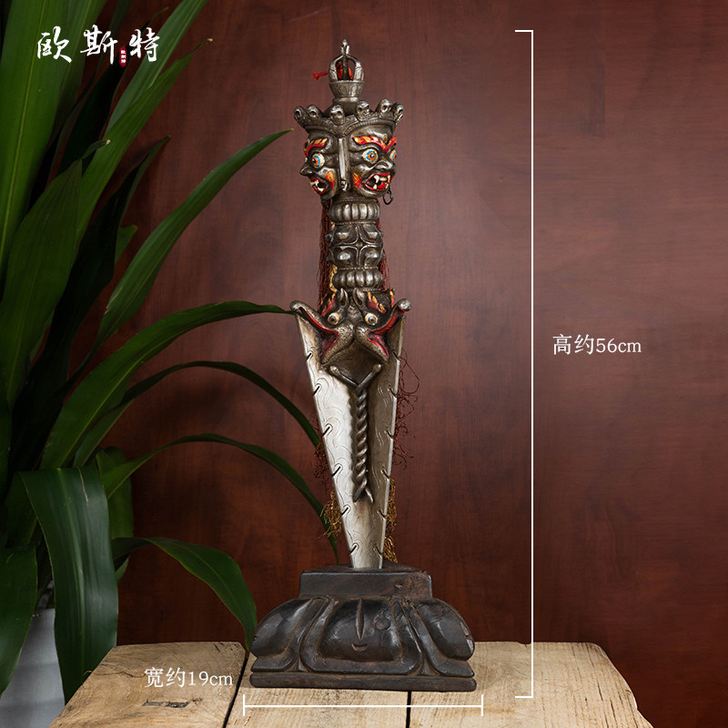 欧斯特 普巴橛尼泊尔佛具手工雕花天铁金刚宝杵大号供具 带底座