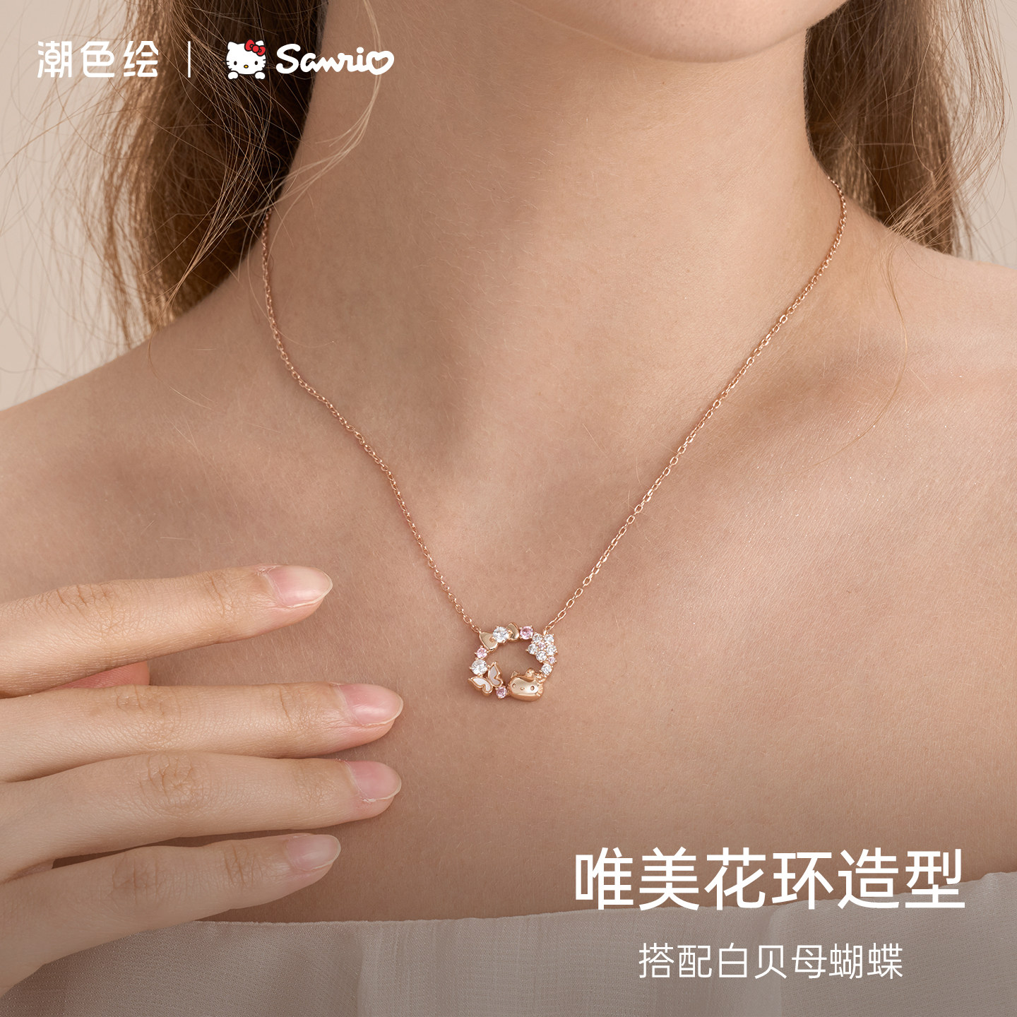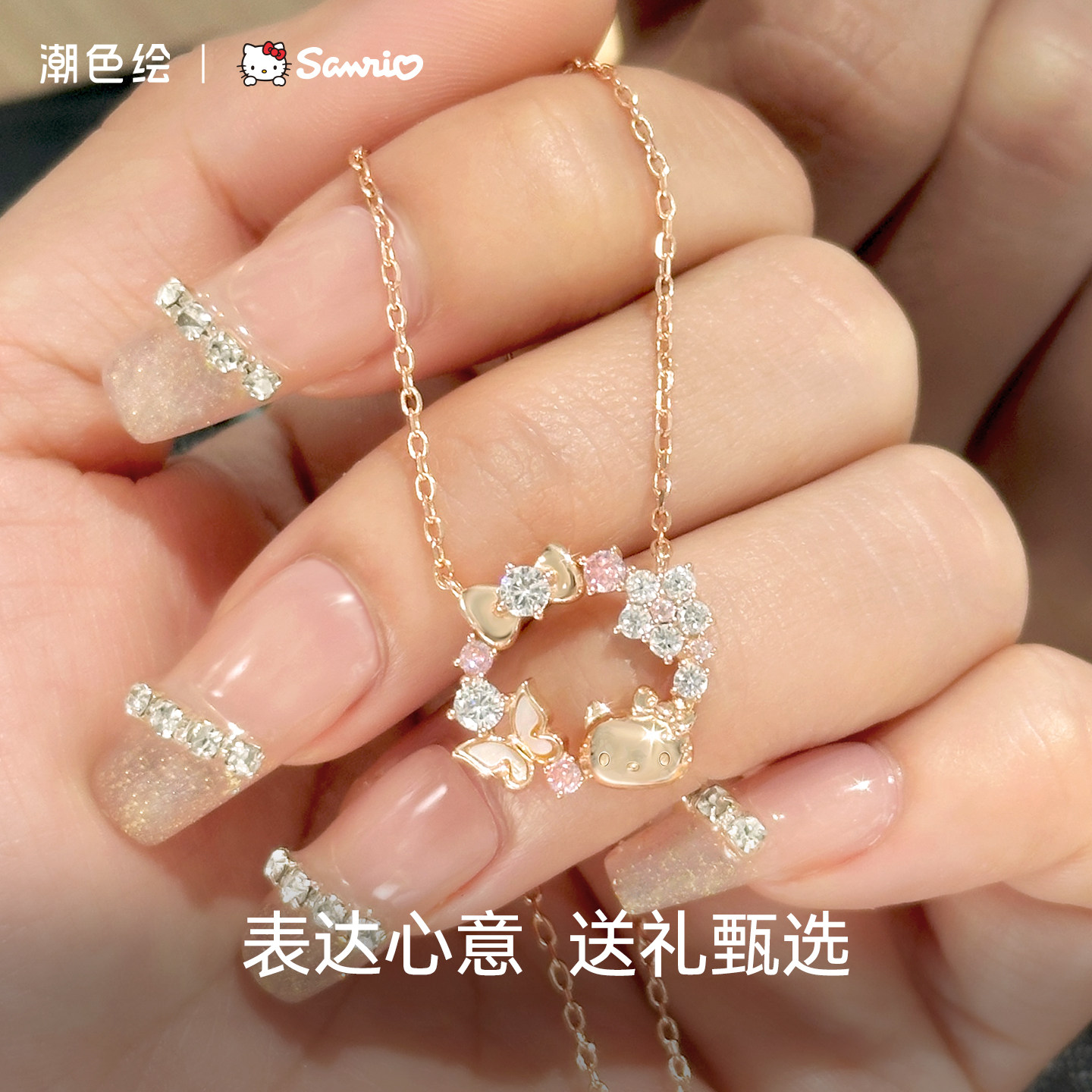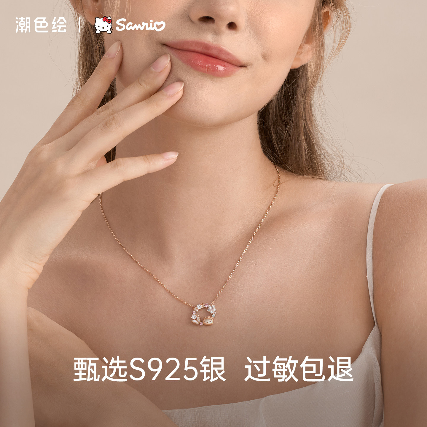 潮色绘x三丽鸥HelloKitty925纯银项链女生款生日情人节礼物送女友