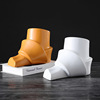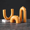 简约拱形橙色花器高级感陶瓷双耳花瓶摆件北欧样板间黑白果盘装饰