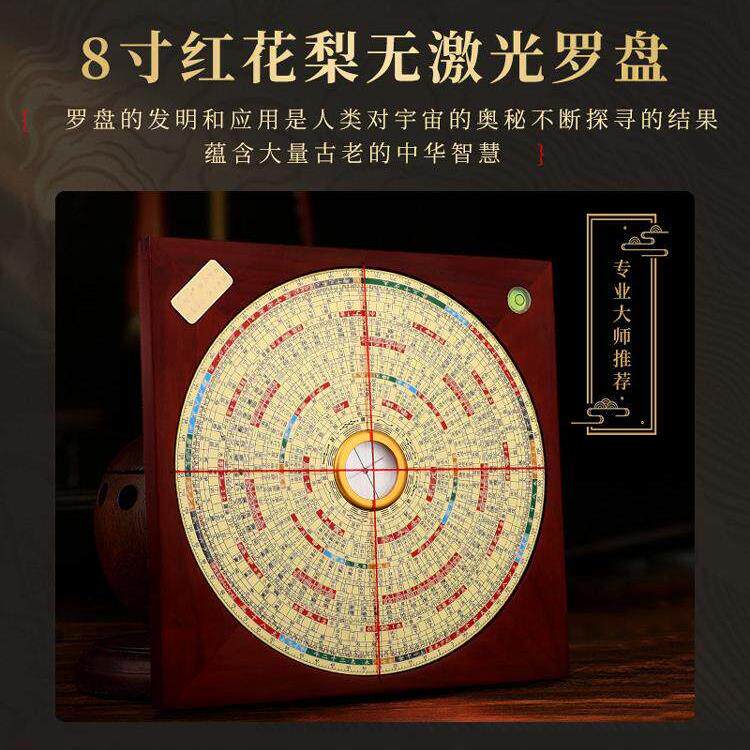 吉瑞堂正品新款罗盘高精度八寸红梨花木综合盘专业纯铜堪舆风水盘