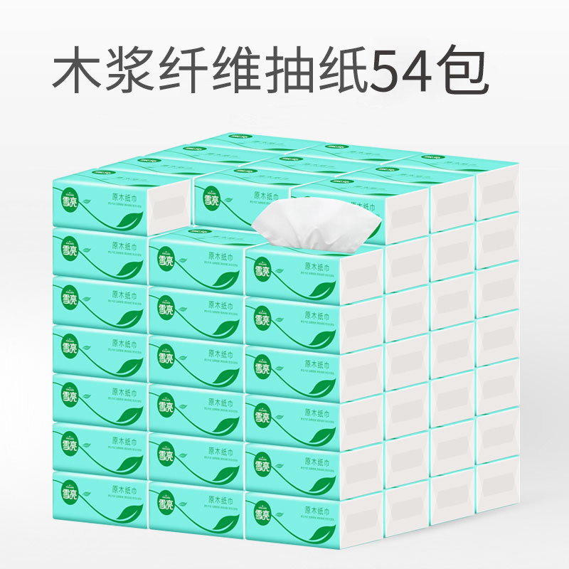 雪亮抽纸家用整箱实惠装54包原木四层加厚纸抽餐巾纸面巾纸卫生纸