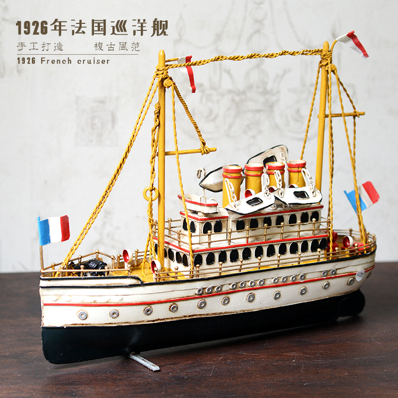 复古邮轮战舰船模型铁艺橱窗装饰品帆船软装家居电视柜酒柜摆件