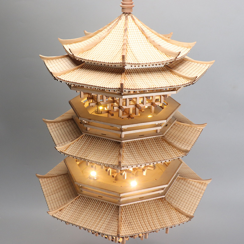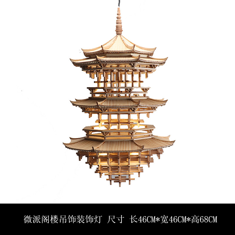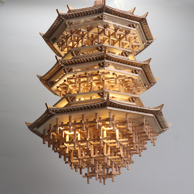 新中式榫卯实木古建筑吊饰书房客厅玄关茶室办公室软装饰品吊灯