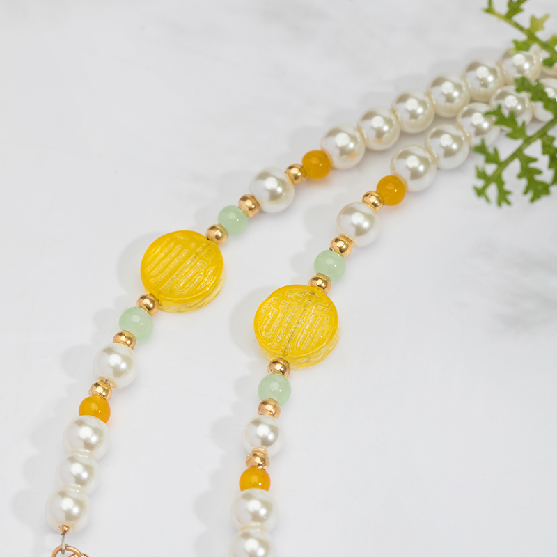 【春未眠】汉服长璎珞背云流苏平安锁项链黄色晚明风宫廷配饰女