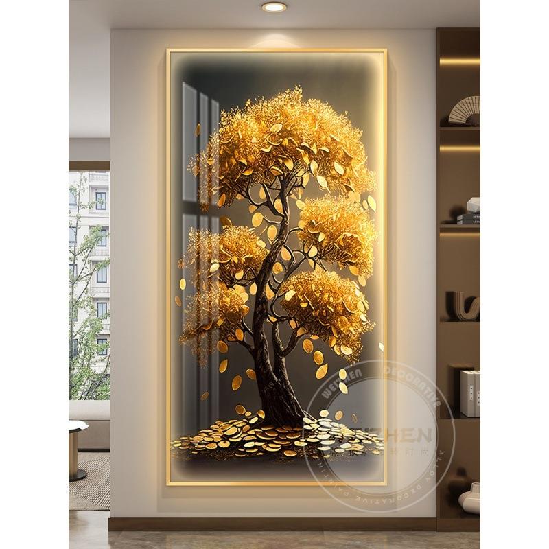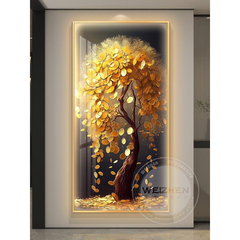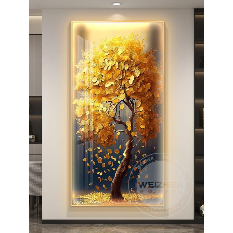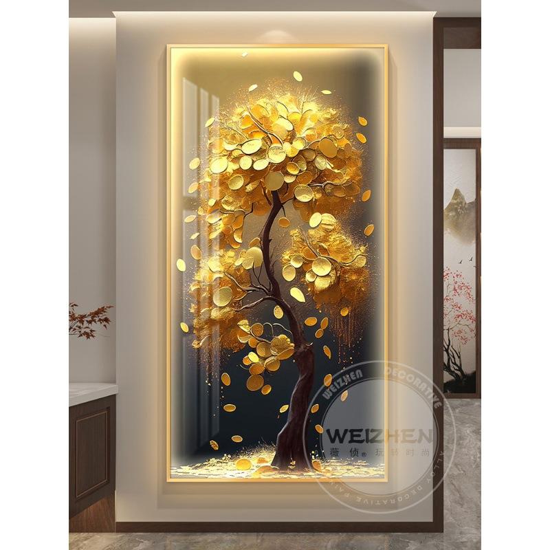 摇钱树led带灯轻奢入户玄关装饰画走廊过道竖版挂画简约现代壁画