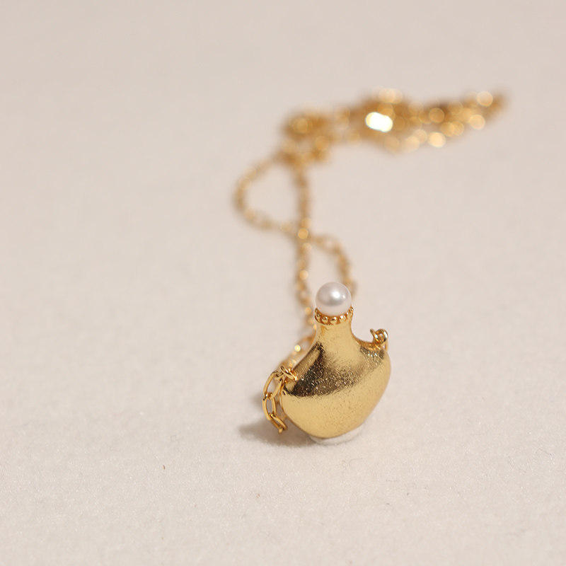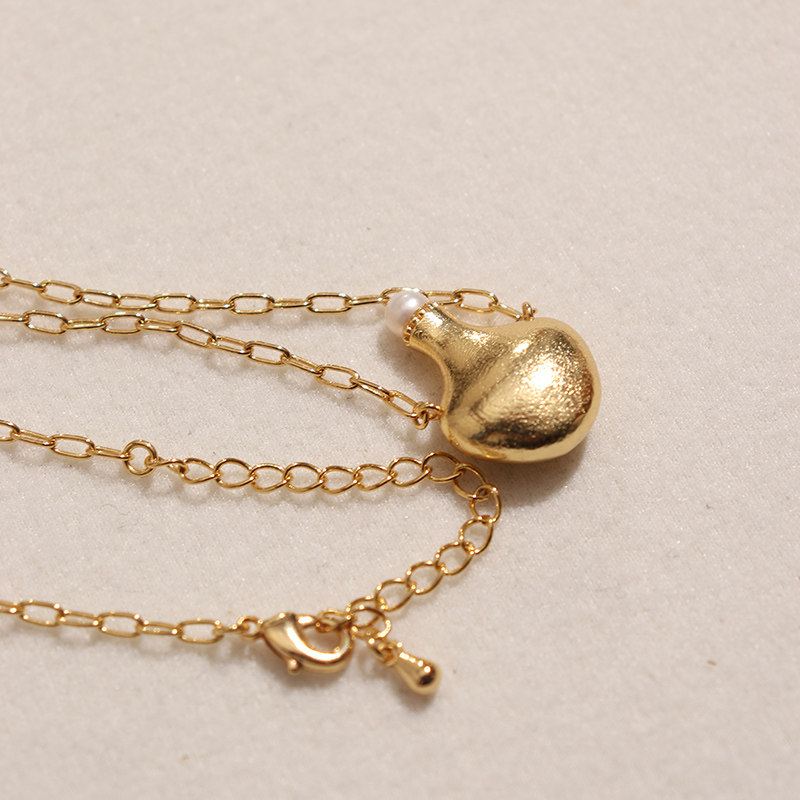 WEARRING 新款高级感磨砂质感你水壶水瓶造型项链淡水珍珠锁骨链