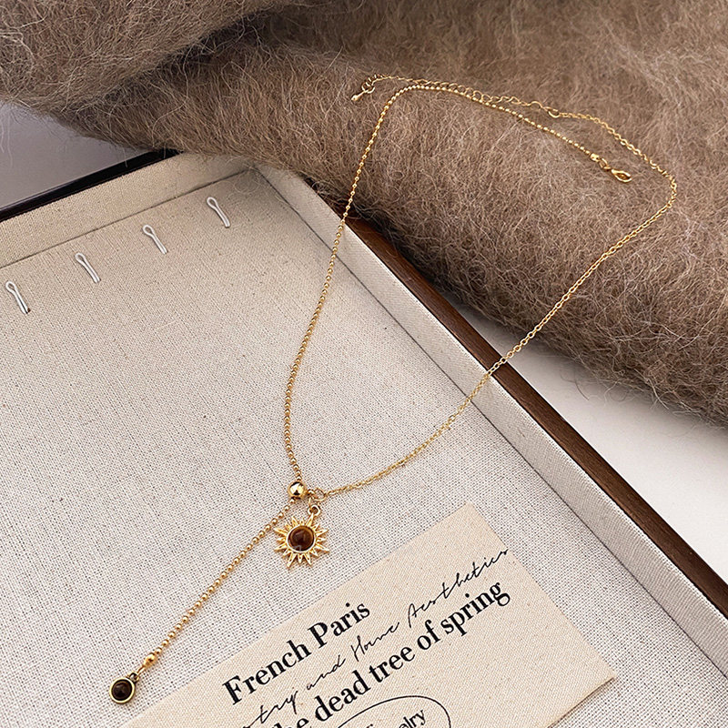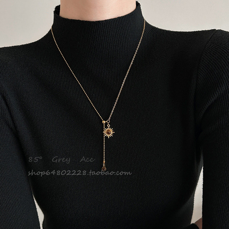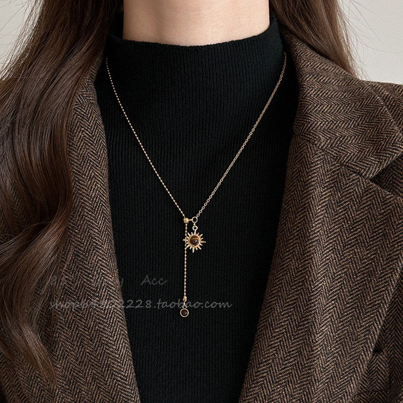 虎眼石款太阳花吊坠项链女美拉德复古气质毛衣链轻奢高级感脖颈链