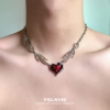 红色爱心朋克项链男亚文化y2k配饰甜酷暗黑吊坠夸张设计锁骨链女