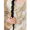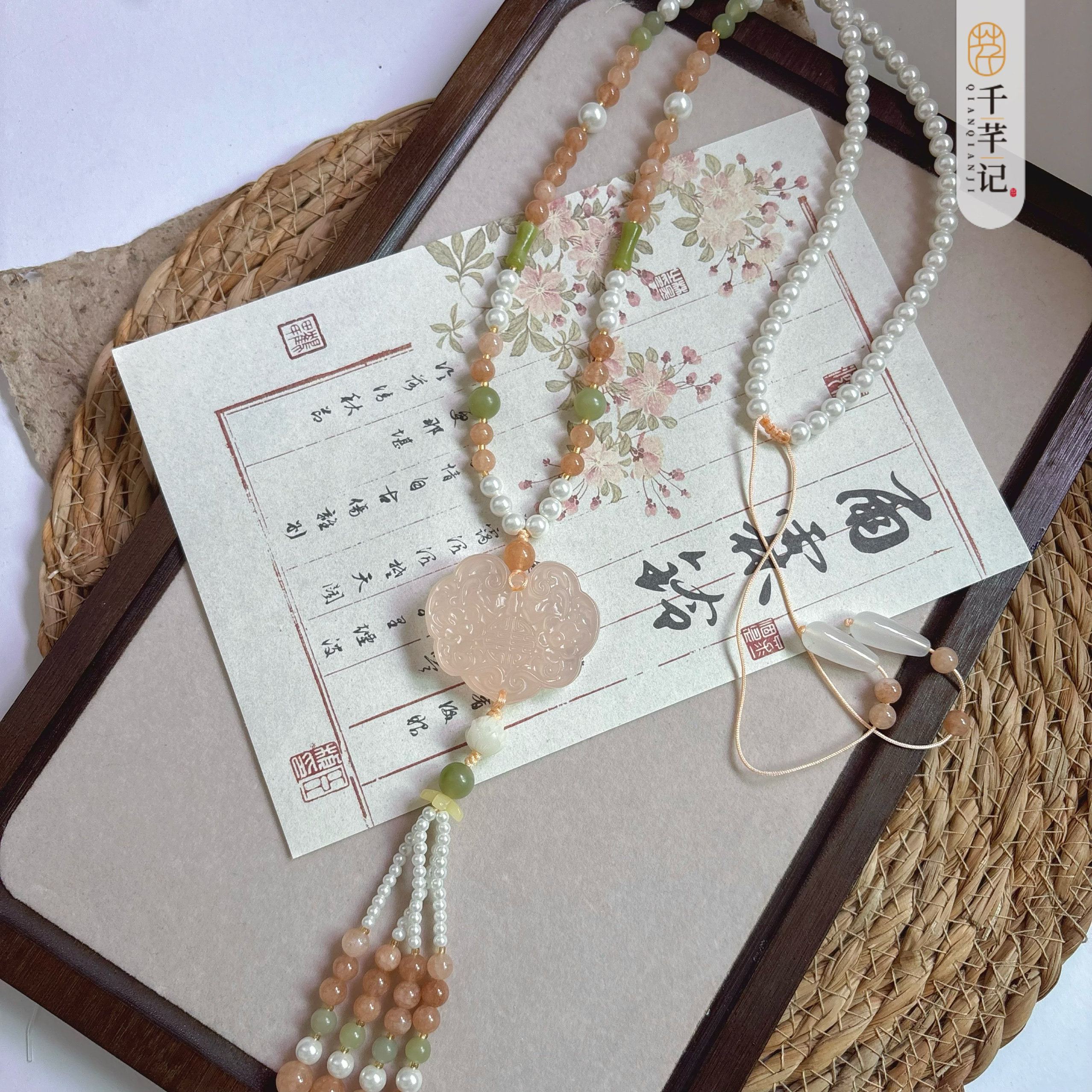 国风无金属藕粉桃心玉石长款璎珞流苏项链百搭汉服旗袍新中式项链