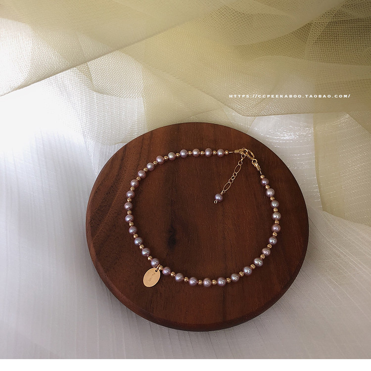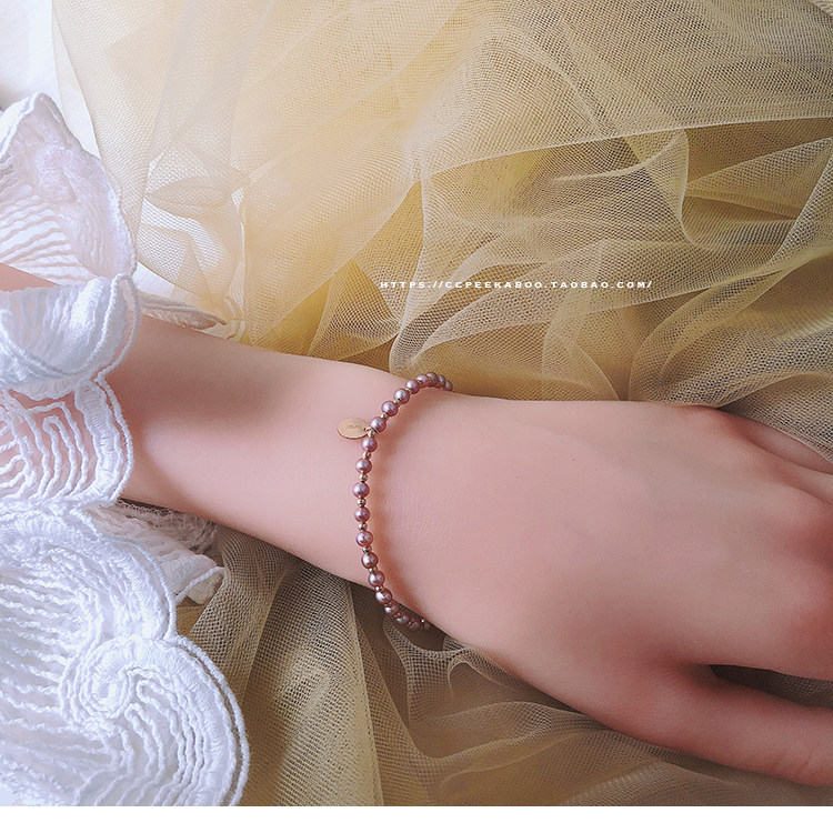 ccpeekaboo | 天然近正圆无暇强光妖紫色包金不掉色淡水珍珠手链