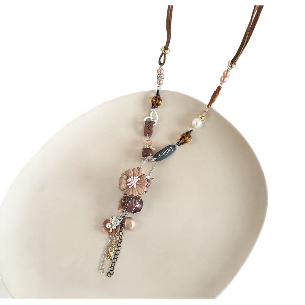 复古民族风花朵吊坠流苏长款项链2025网红新款爆款新中式颈链配饰