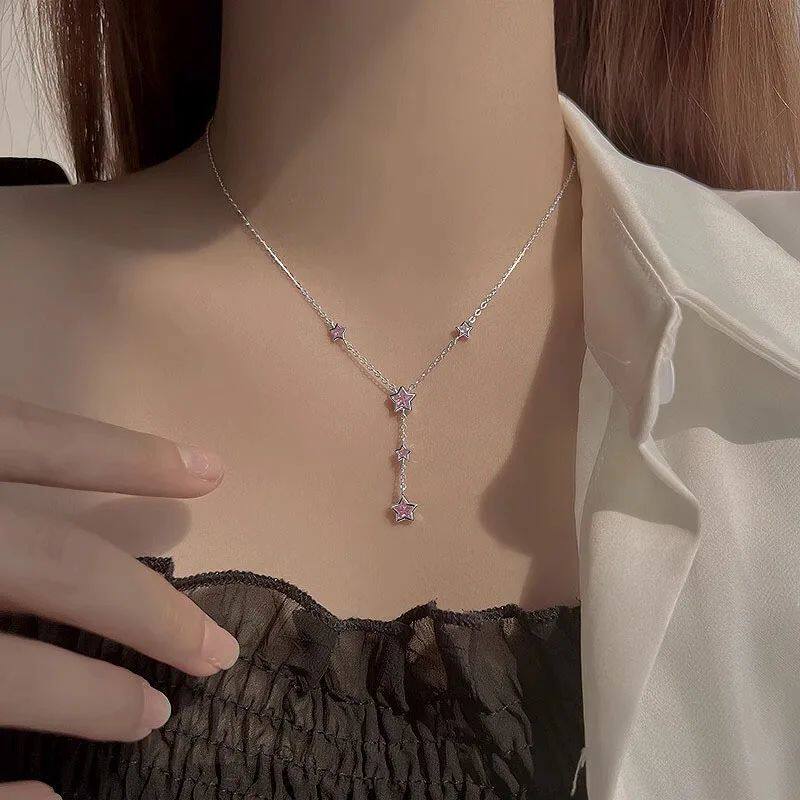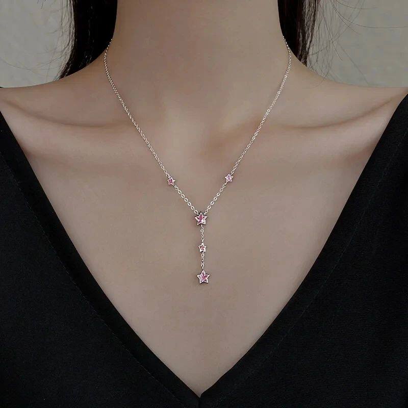 Luxury Sainless Seel Swee Sar Pink Zircon Pendan Necklaces f