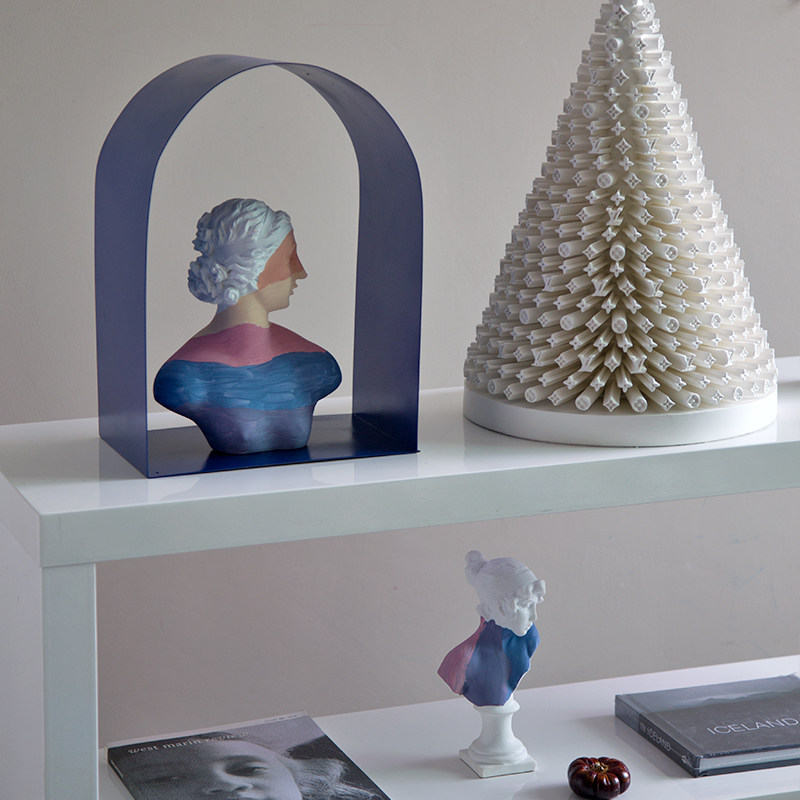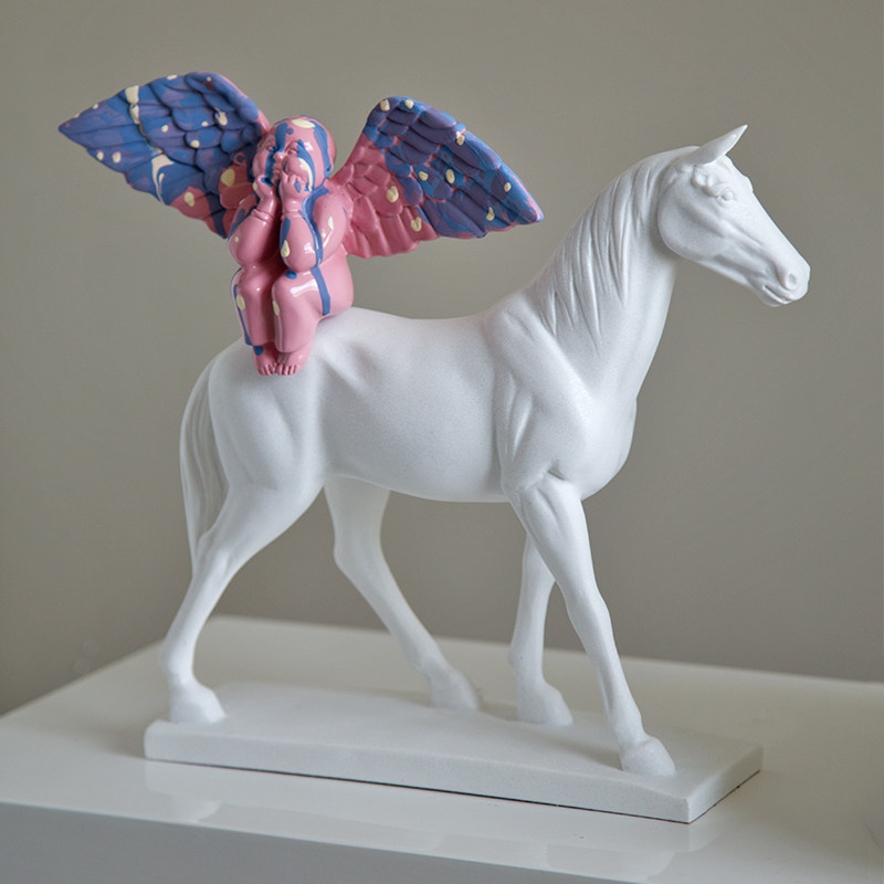 蓝调粉色彩色小天使艺术雕塑拱门人物雕像女孩法式摆件家居装饰品