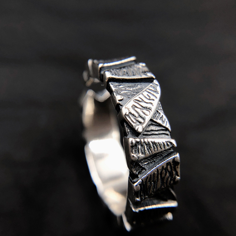 原创设计《枯板》S925银复古百搭开口可调节戒指男女霸气做旧饰品