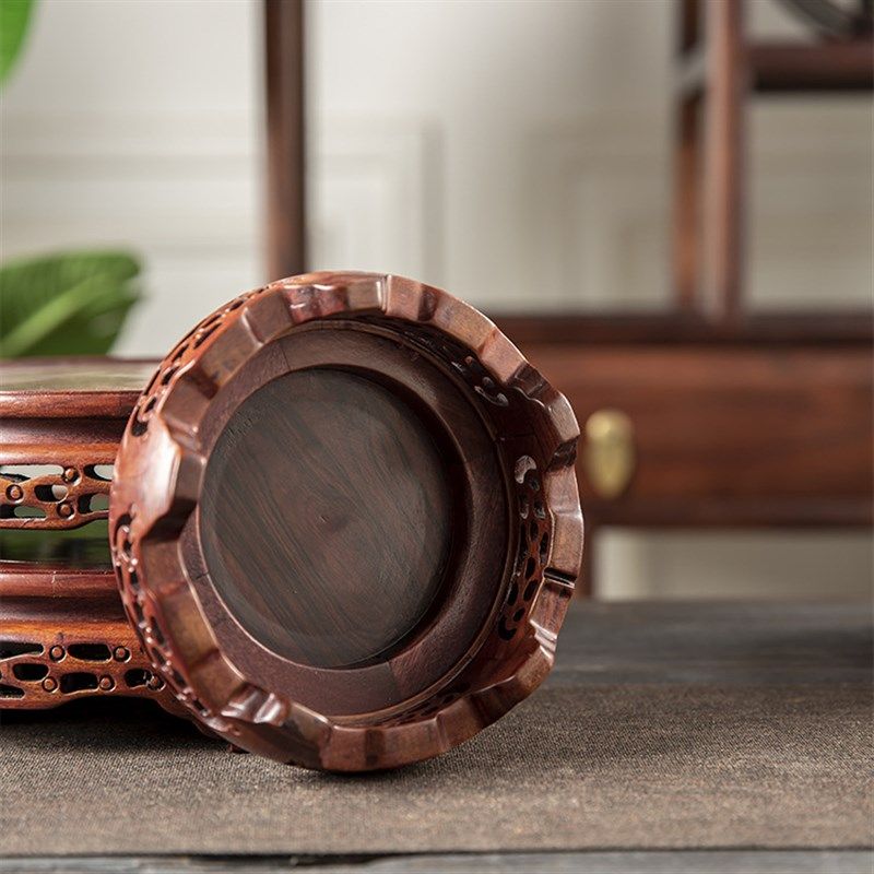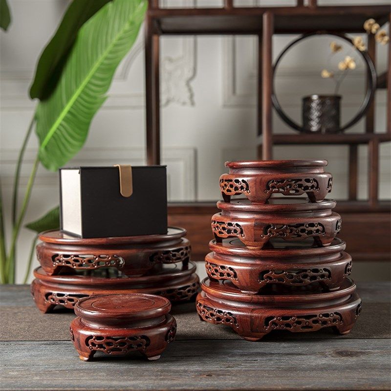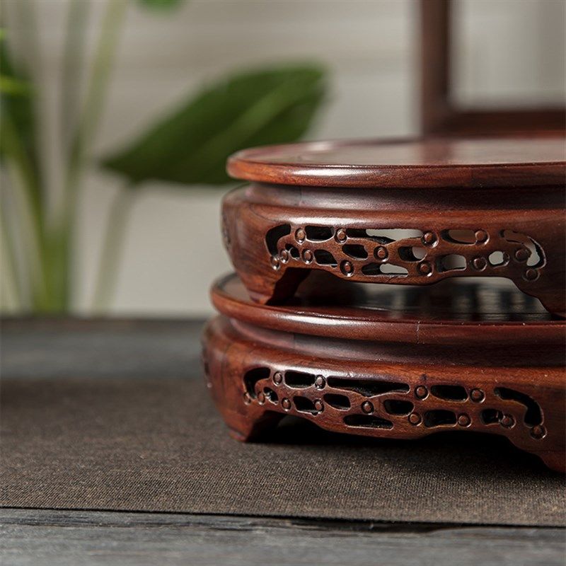红色实木圆形底座花瓶花盆底盘奇石佛像鱼缸底托木架子木质酒坛托