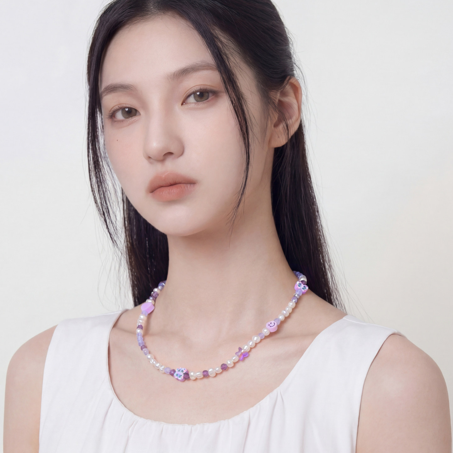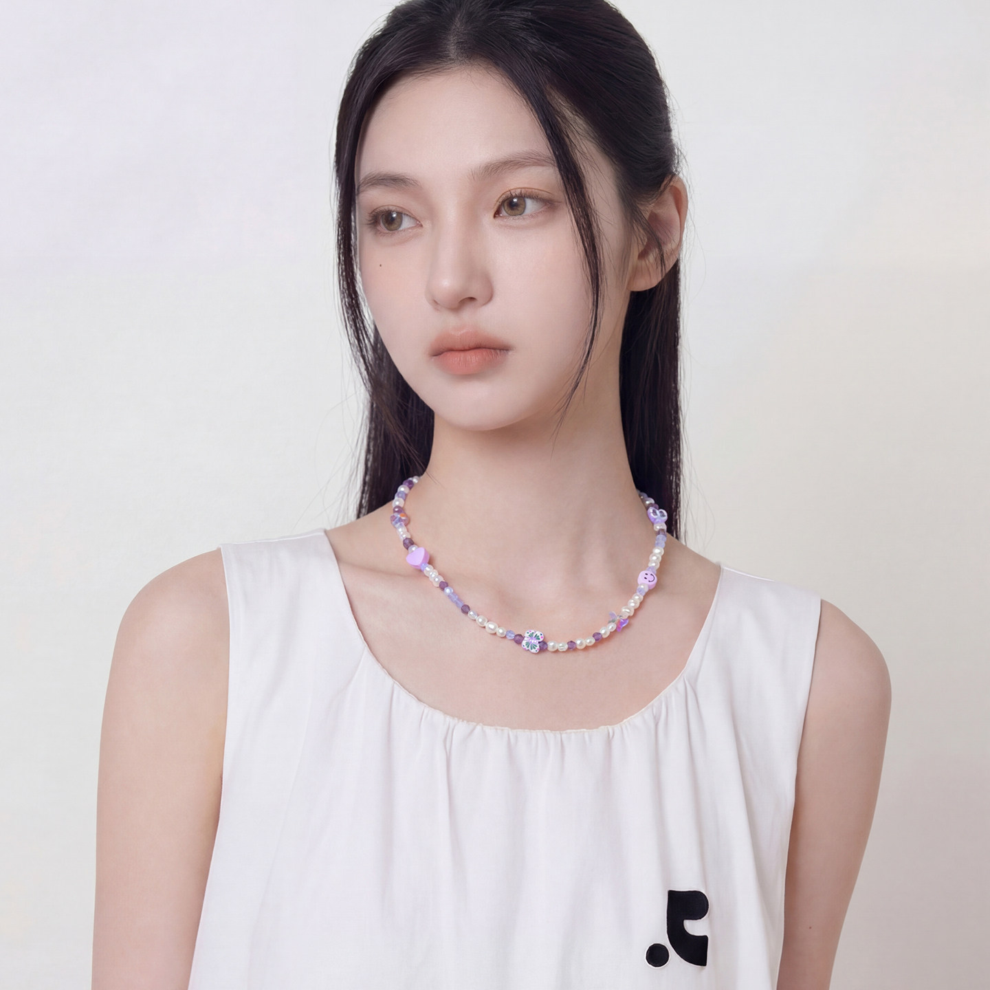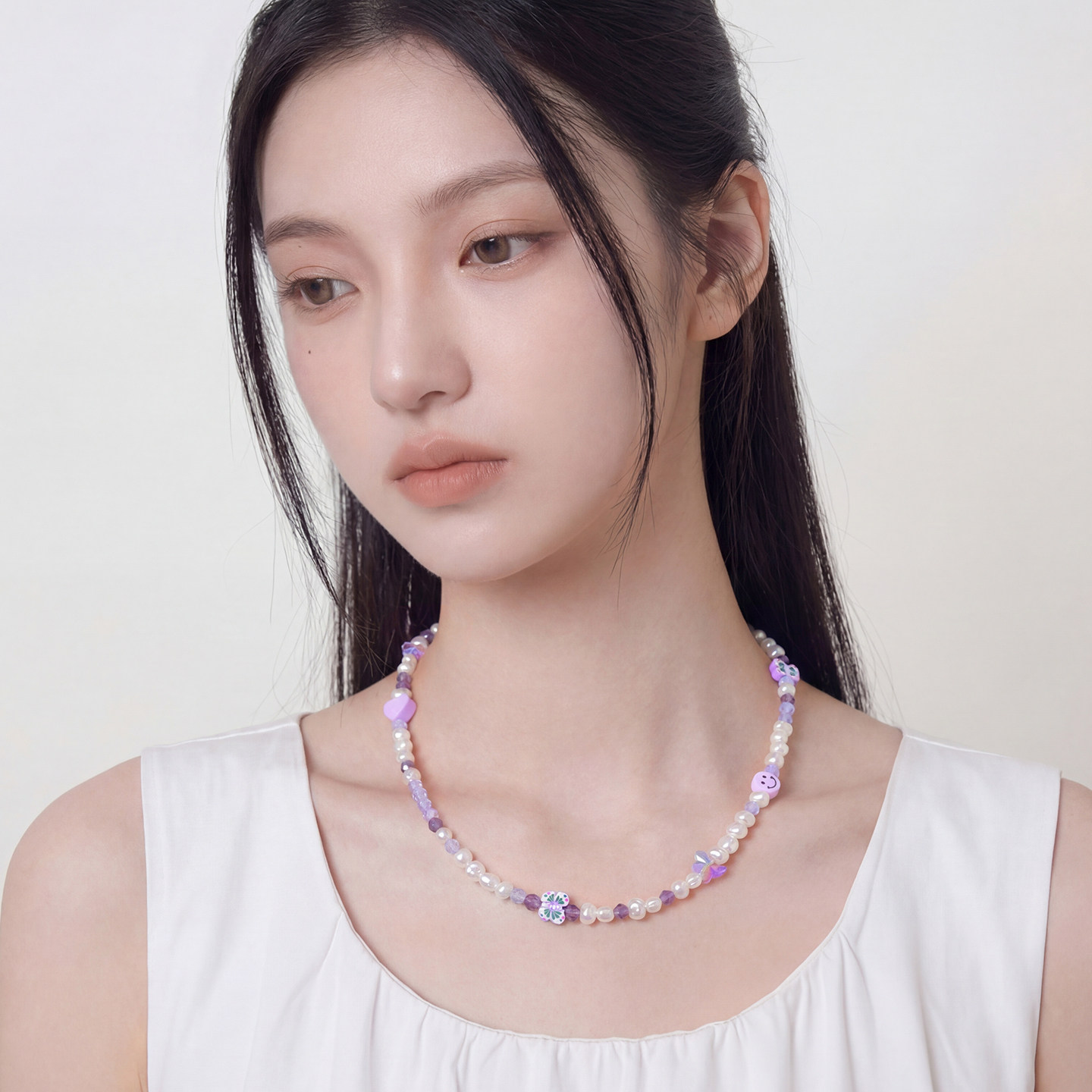 AWE官方周雨彤同款紫色水晶串珠项链女珍珠爱心笑脸蝴蝶锁骨颈链