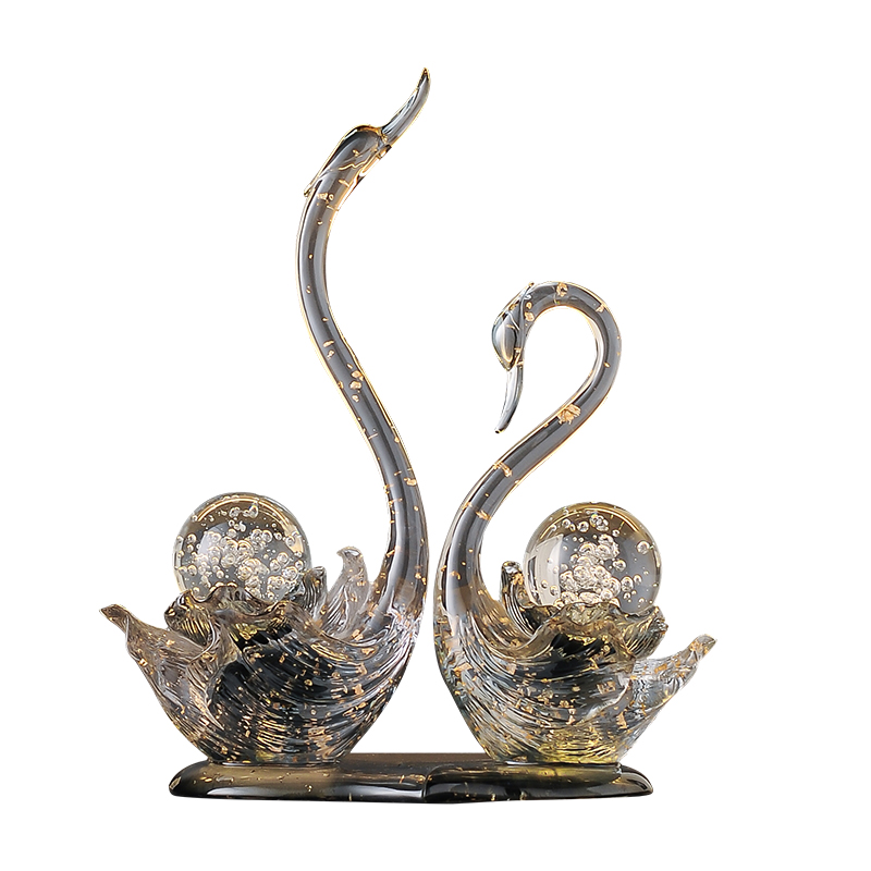 轻奢透明情侣天鹅结婚婚礼摆件客厅酒柜家居装饰品电视柜玄关软装