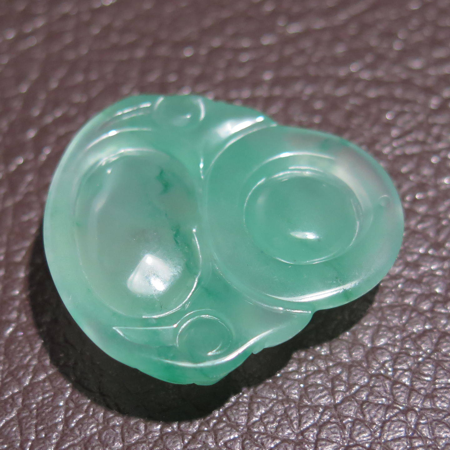 高品质天然非洲翠独龙玉冰种玉石带绿飘花笑佛吊坠S