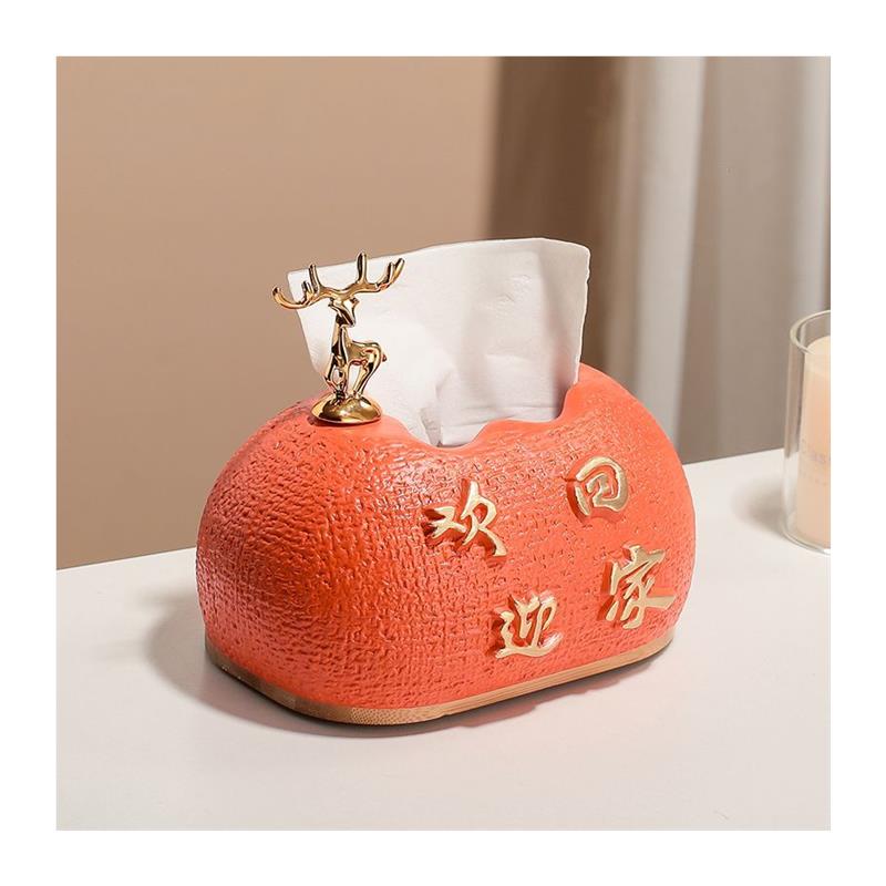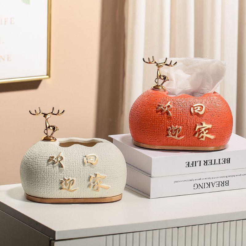 创意陶瓷摆件欢迎回家纸巾盒轻奢收纳盒客厅可爱复古家高档纸巾盒