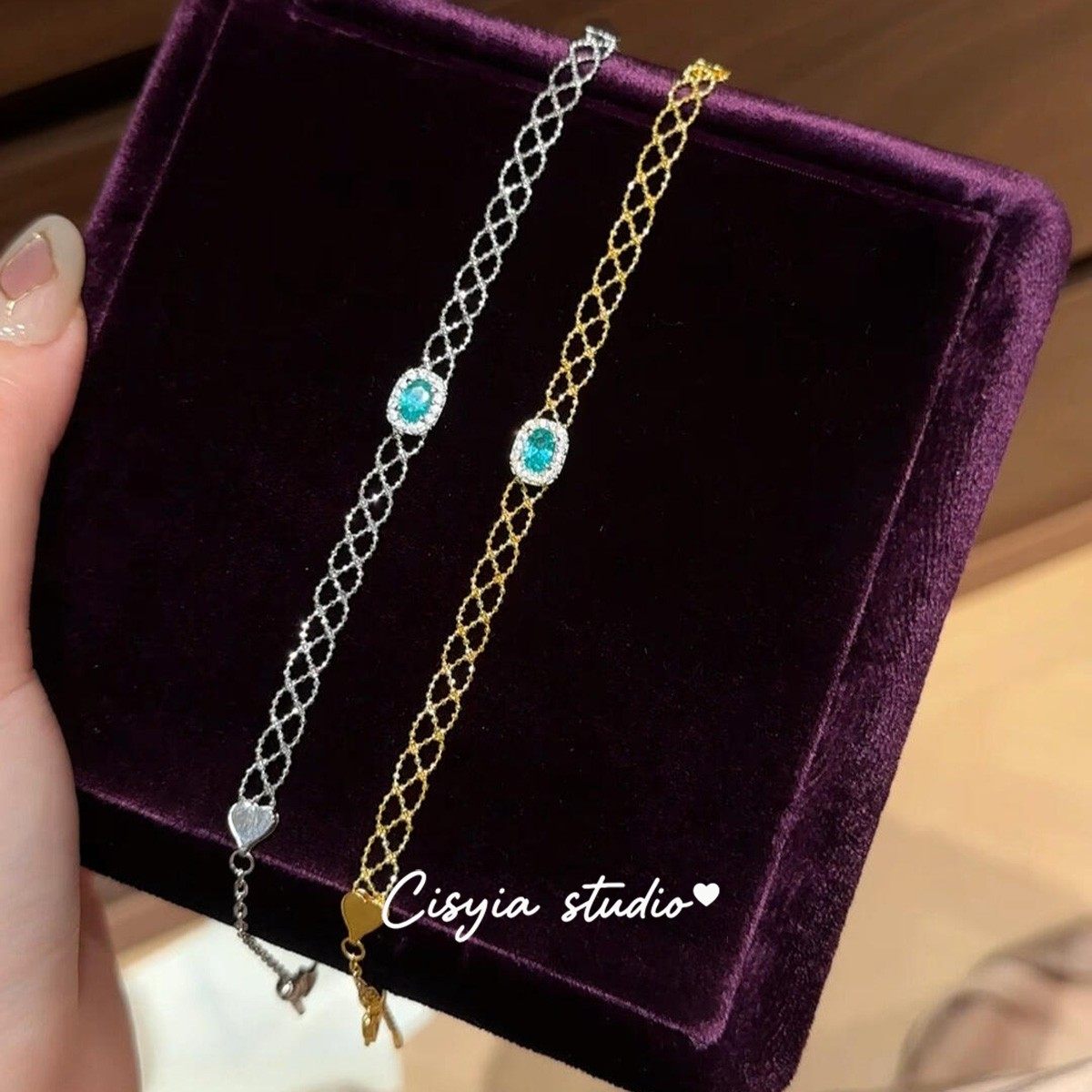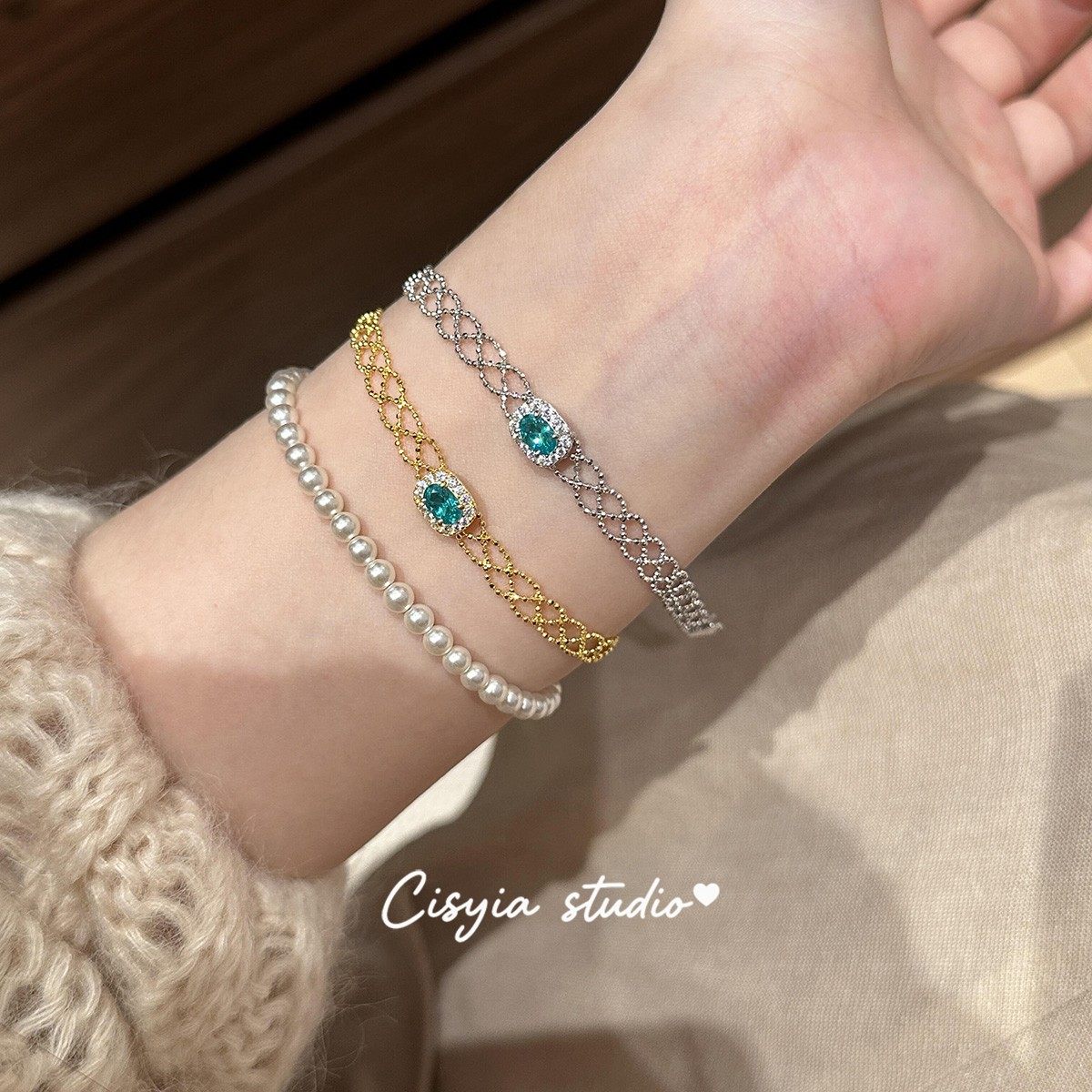 精致气质帕拉蓝色闪钻方糖蕾丝手链女轻奢小众设计高级感时尚手饰