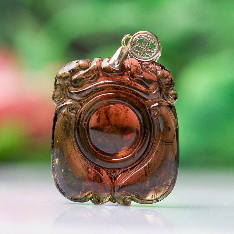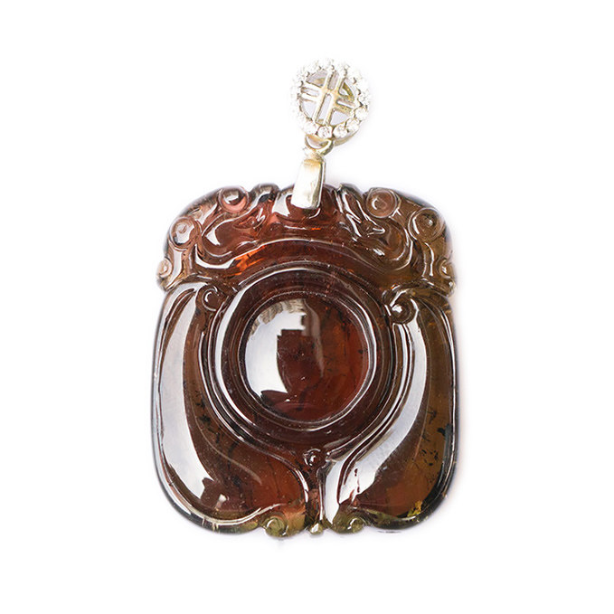 未注胶 天然玻璃体西瓜碧玺吊坠挂件 双龙福瓜雕件晶体通透 证书