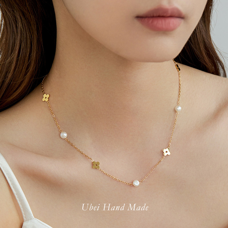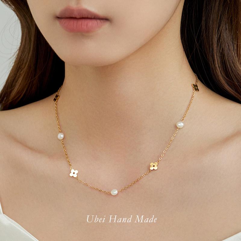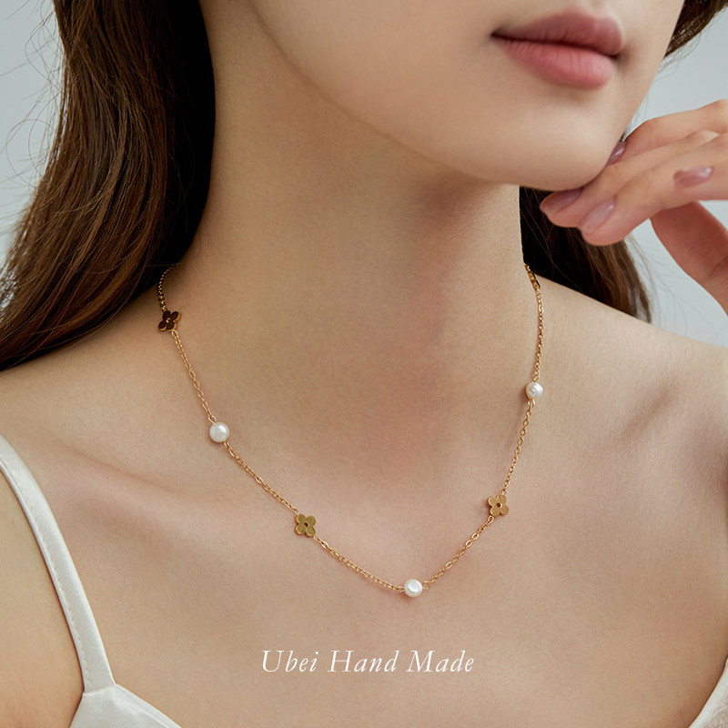 有北手作 法式浪漫淡水珍珠花朵项链小众设计日常百搭通勤锁骨链