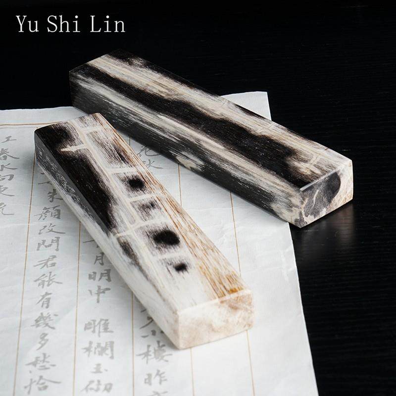YuShiLin木化石镇纸毛笔书法镇尺中国风树化文房四宝用具彷古摆件