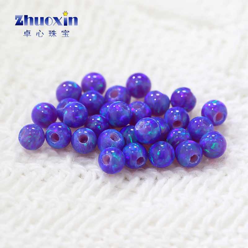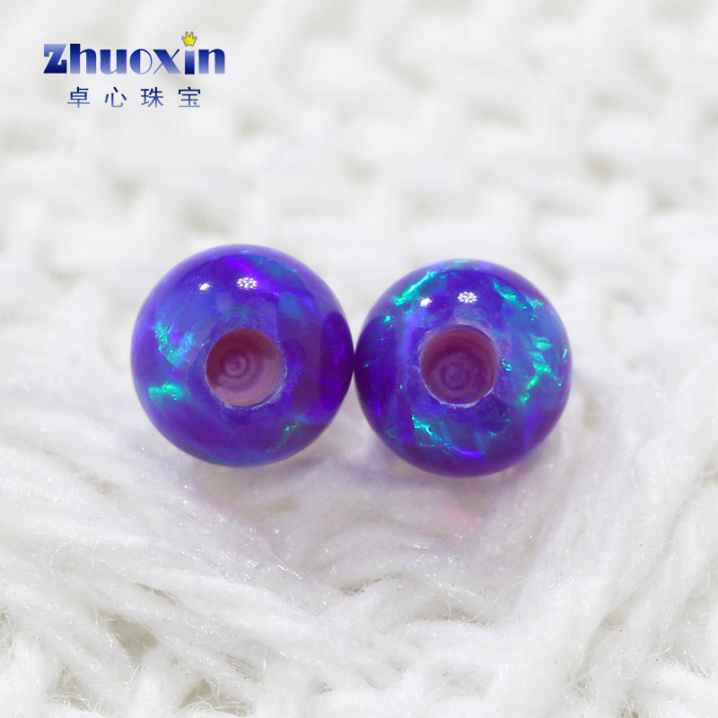 紫色蓝绿变彩半孔圆珠欧泊欧珀石裸石 球形打孔珠子合成澳宝OP51