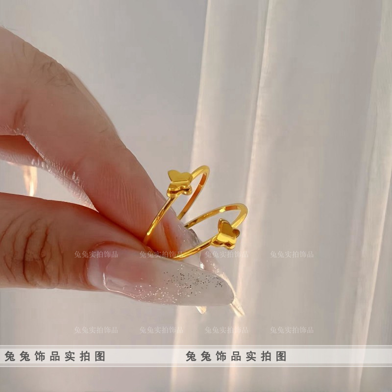 【钛钢不掉色】迷你双层蝴蝶仙女素圈戒ins指环某福同款闺蜜戒指
