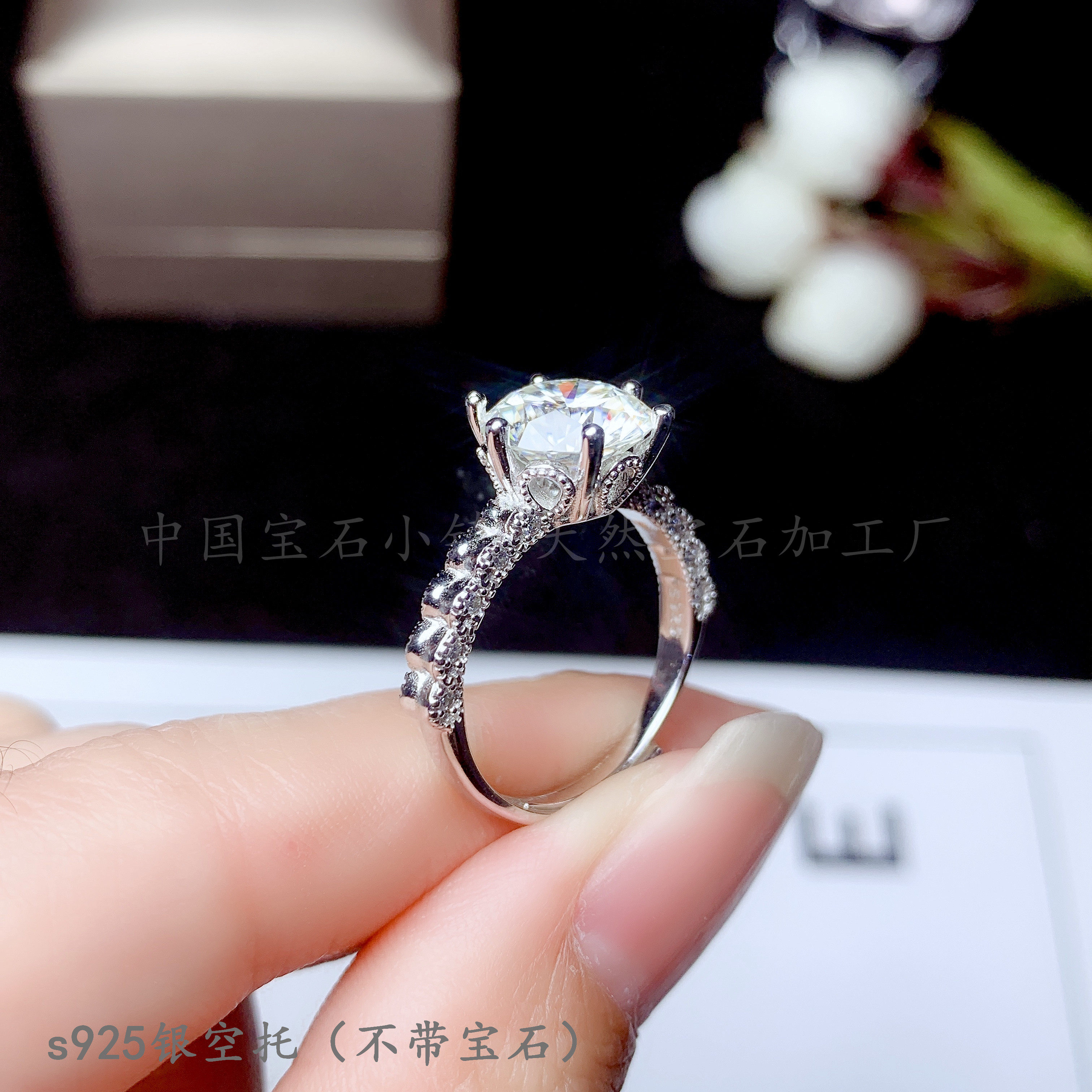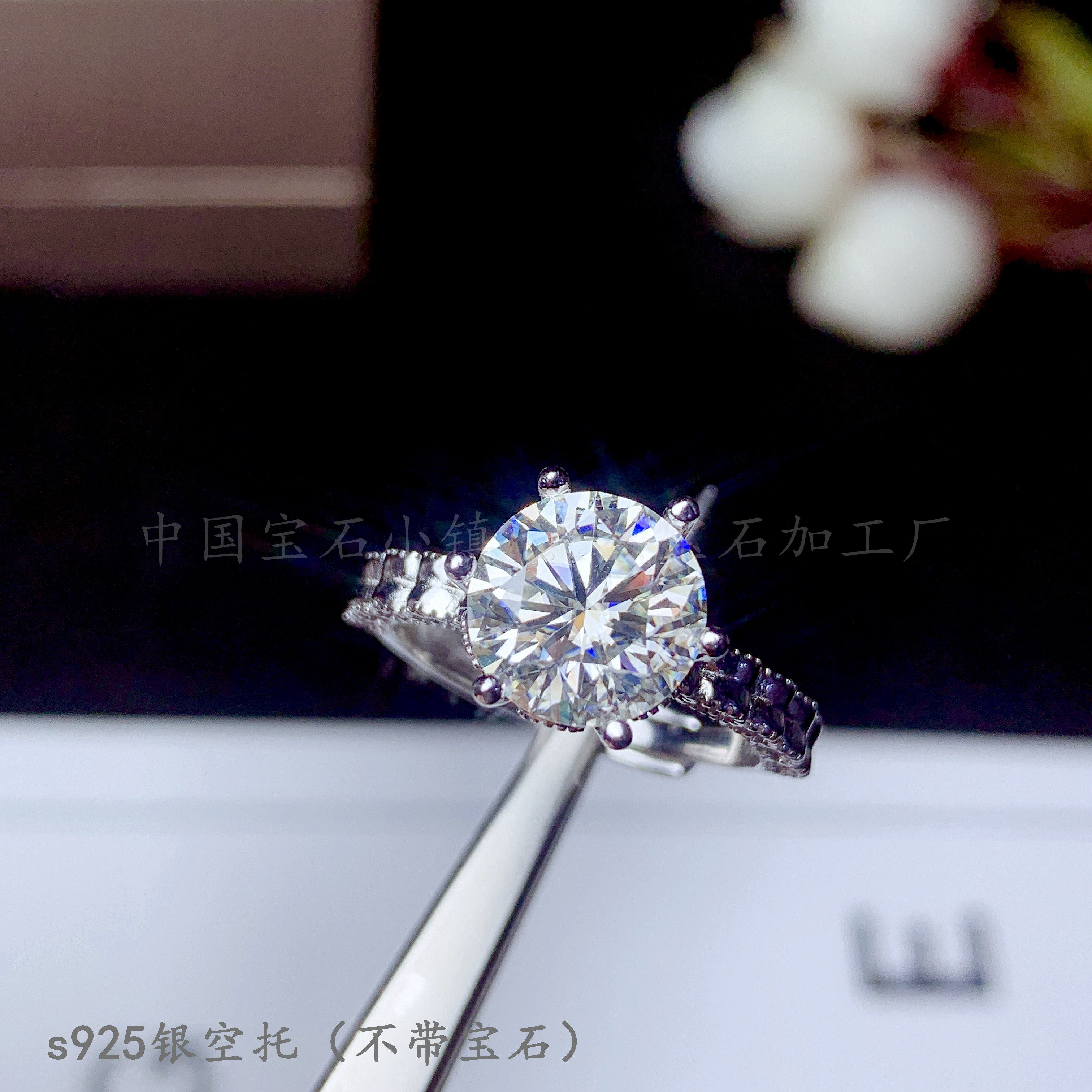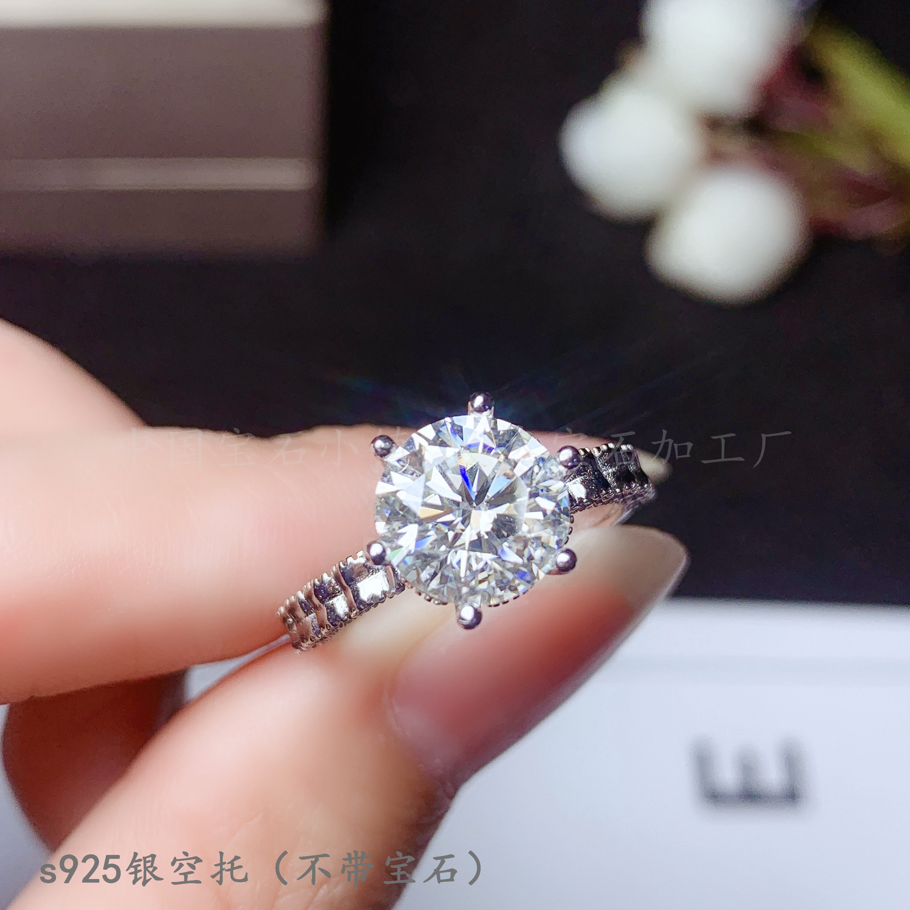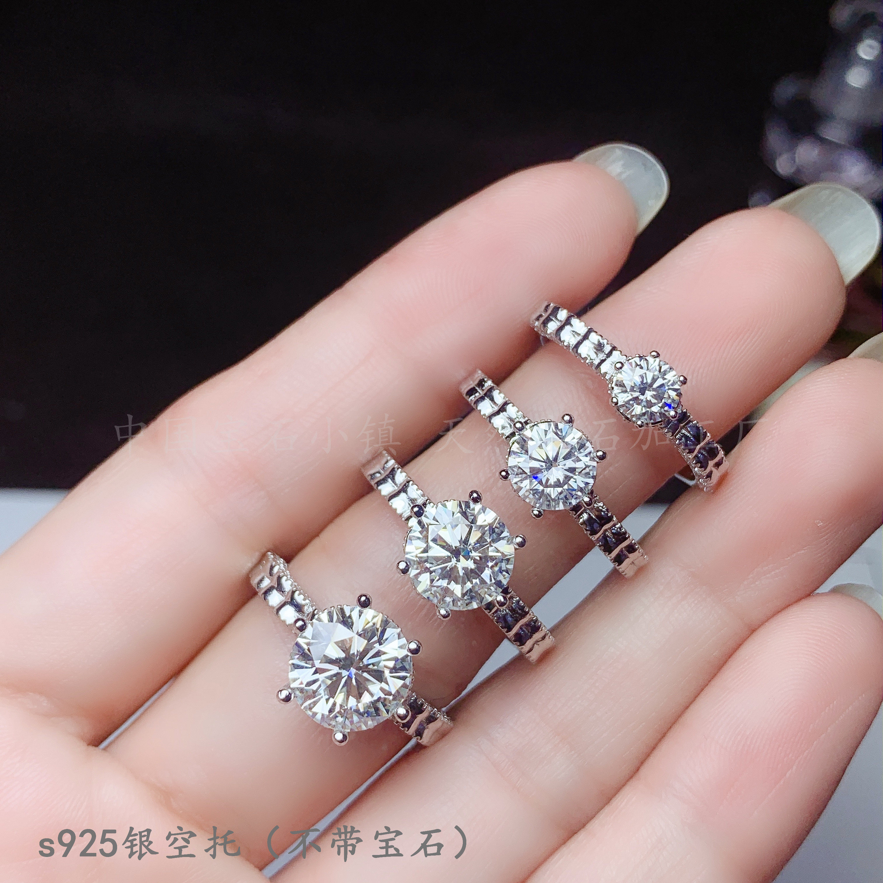 s925纯银 圆5 6.5 8 9mm戒指空托 镶钳晶石 莫桑钻50分 1 2 3克拉
