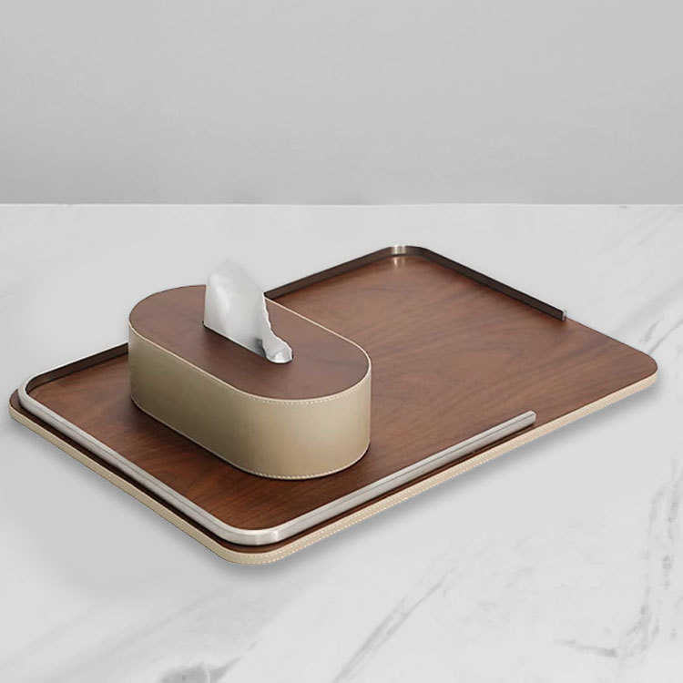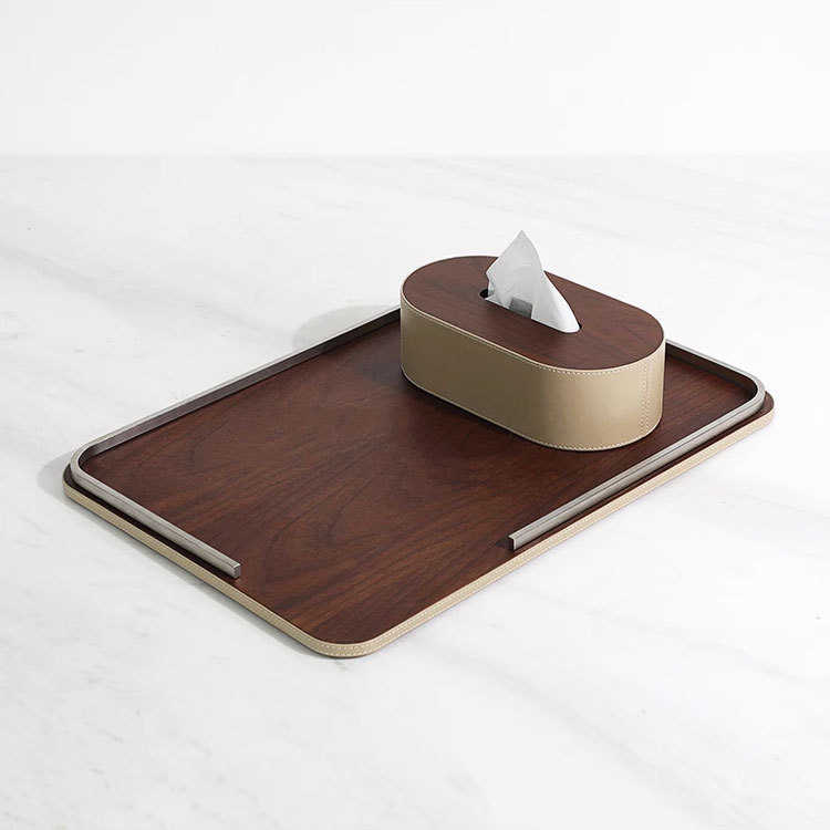 现代轻奢原木色托盘样板间售楼处家居客厅书房玄关收纳装饰摆件