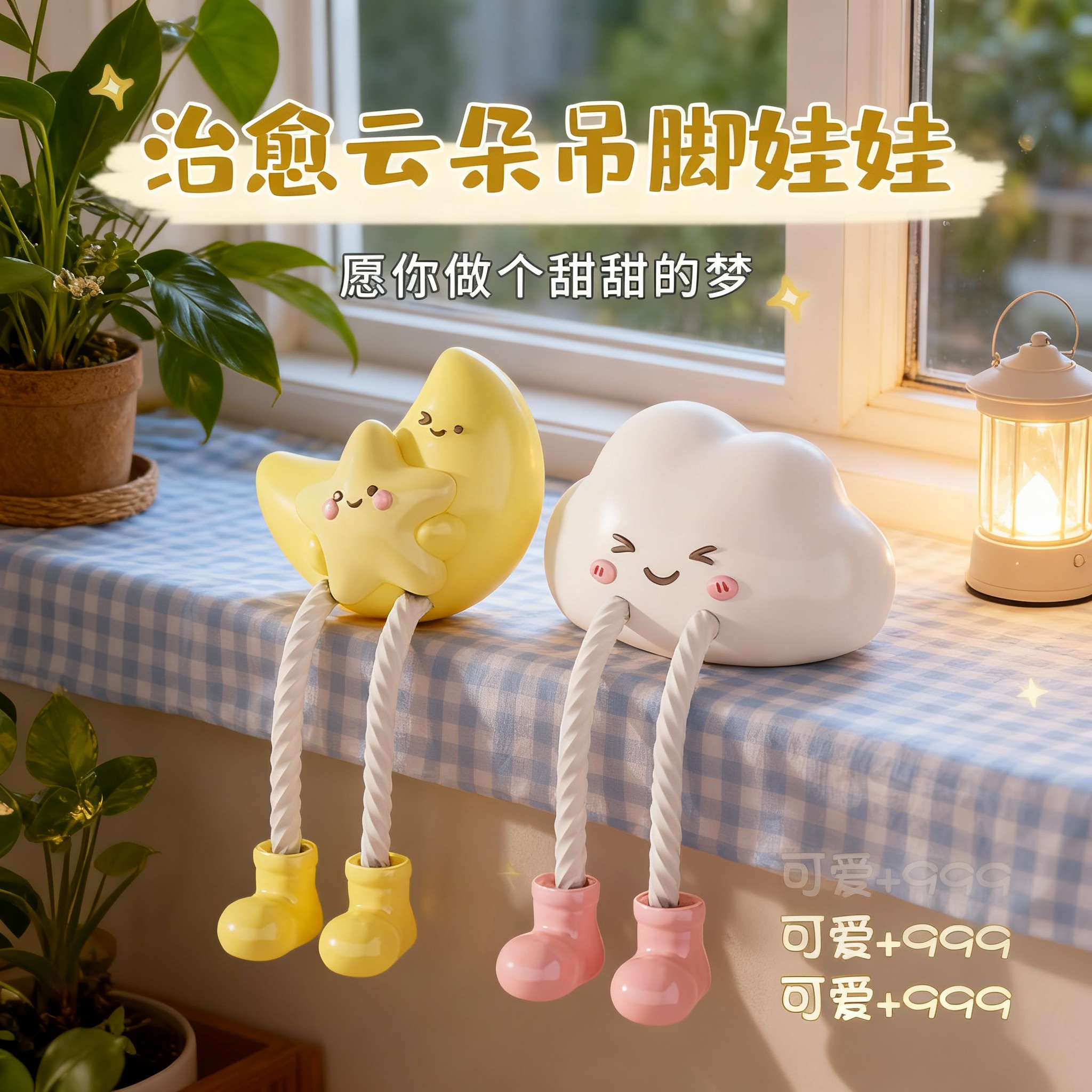 可爱卡通云朵月亮毛绒挂件治愈系书包钥匙扣包包挂饰