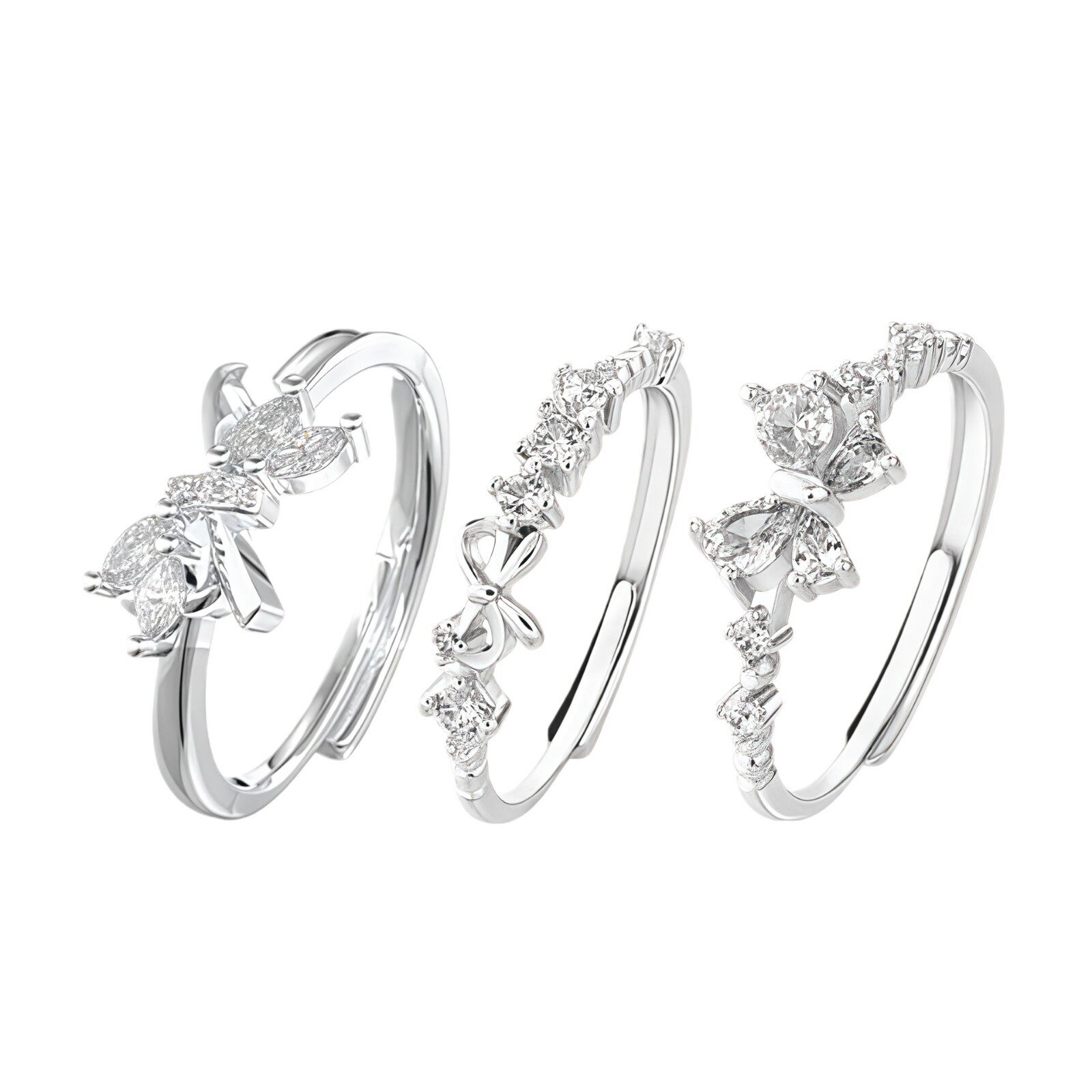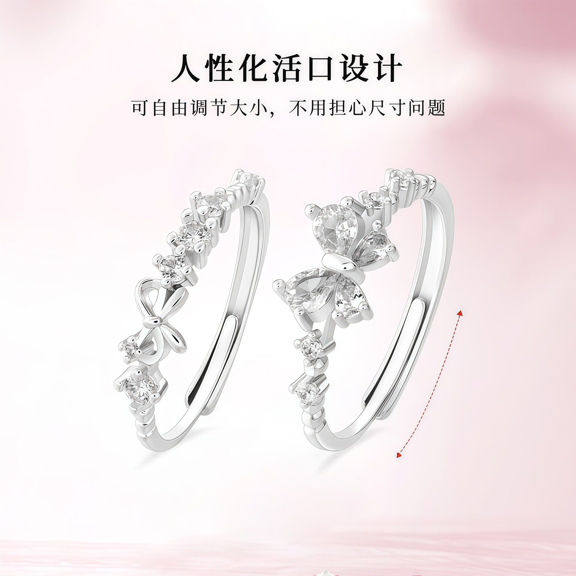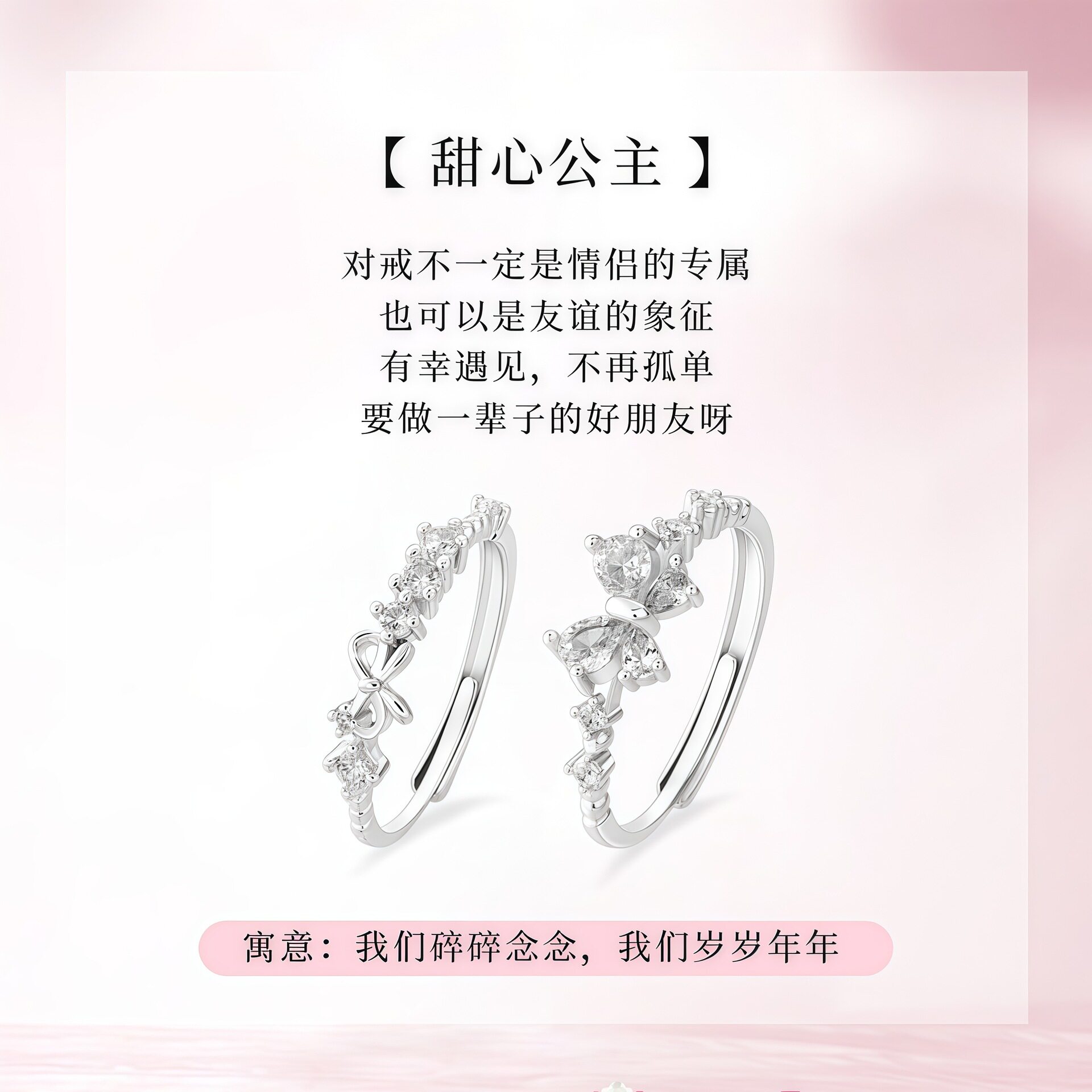 S999足银甜心公主戒指轻奢新款时尚蝴蝶结纯银指环送闺蜜生日礼物