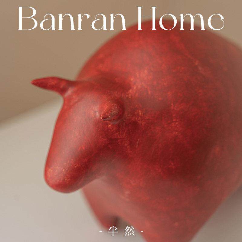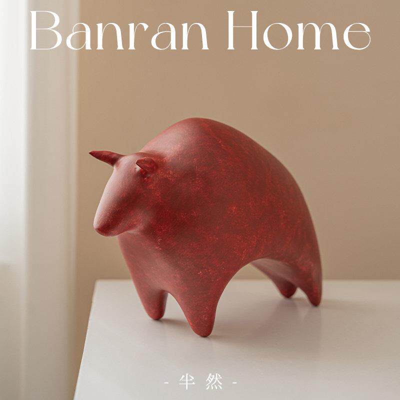 半然红色牛树脂装饰动物摆件办公室客厅玄关桌面高级感乔迁礼物