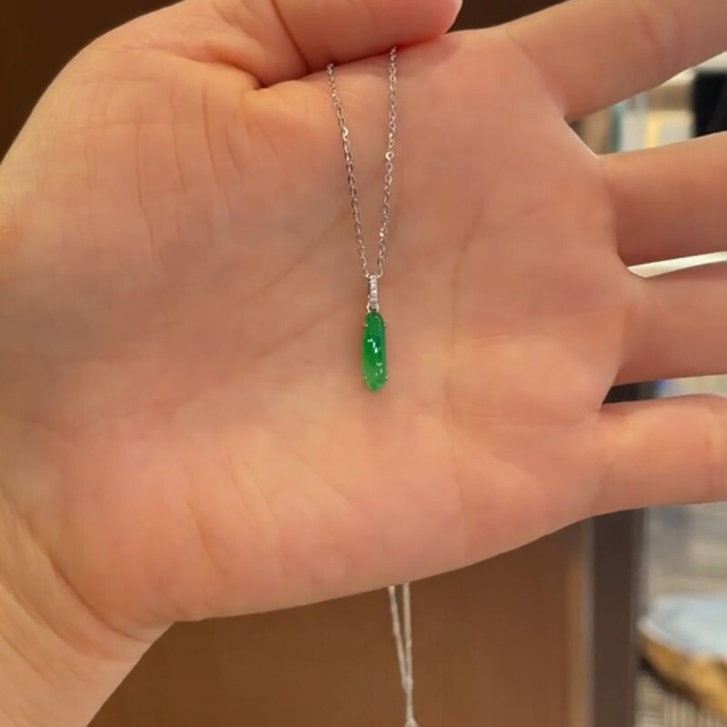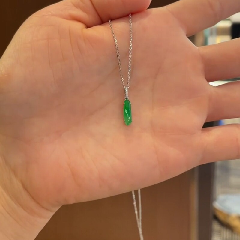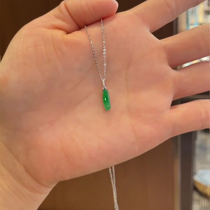 新中式祖母绿色仿玉髓吊坠项链女高级感轻奢小众国风优雅锁骨颈链