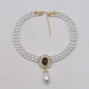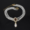vintage复古多层珍珠镶钻吊坠项链女时尚几何椭圆紫色水晶毛衣链