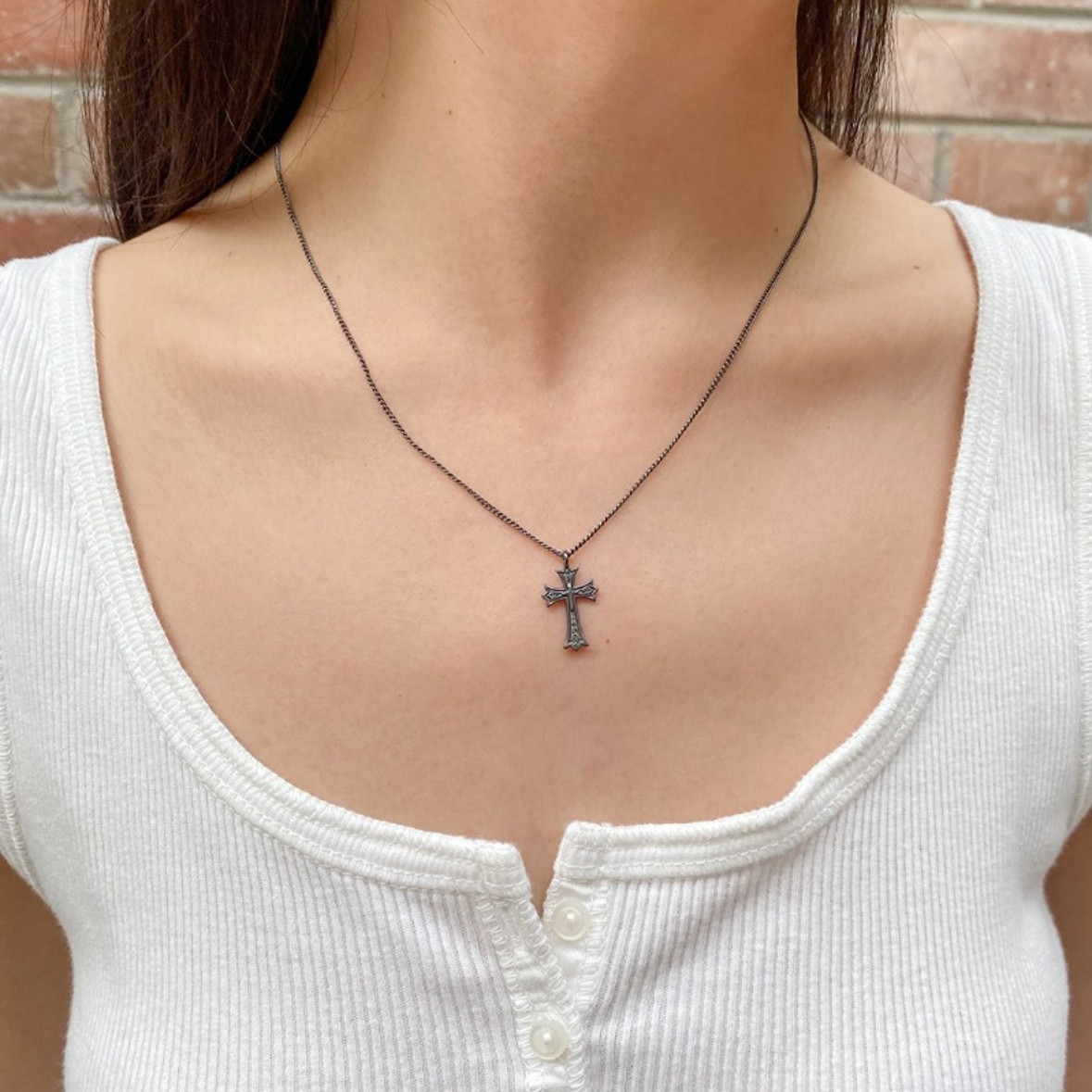 bm十字架项链新款黑色链条细链锁骨链女生国内代购brandymelville