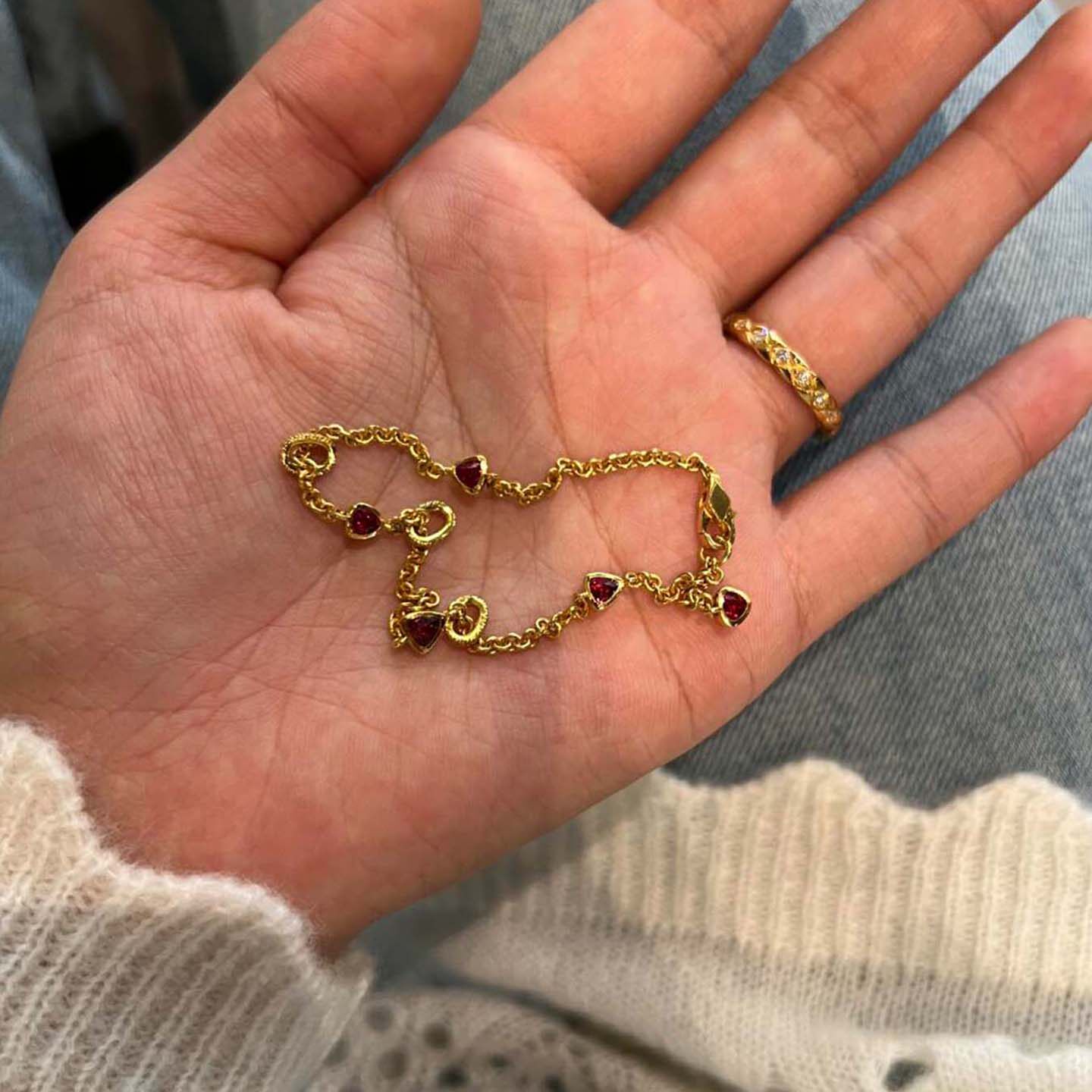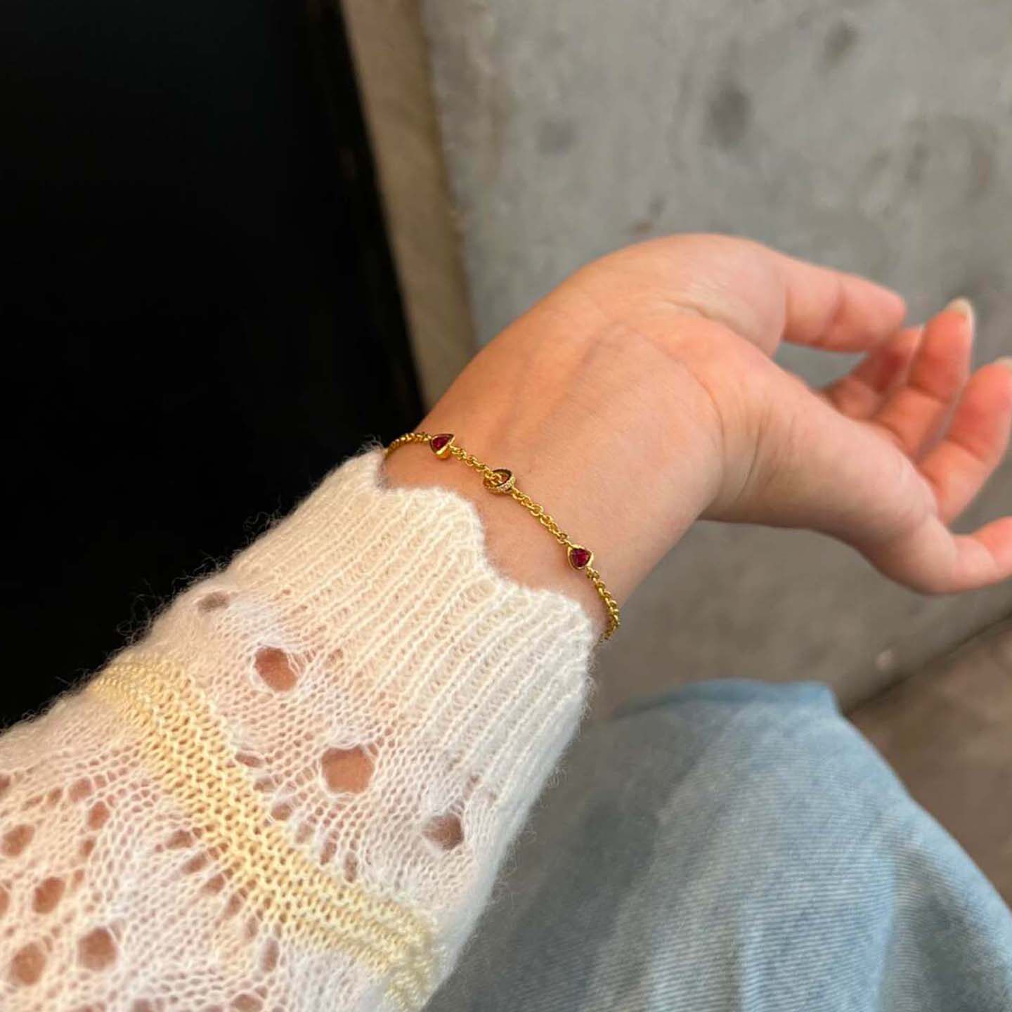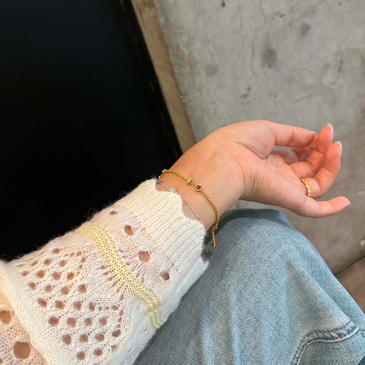 中古鸽血红色三角形仿钻石手链女2025新款轻奢小众精致高级感手饰