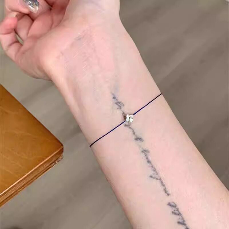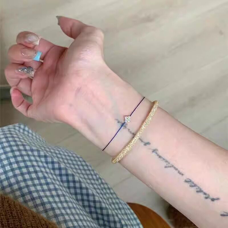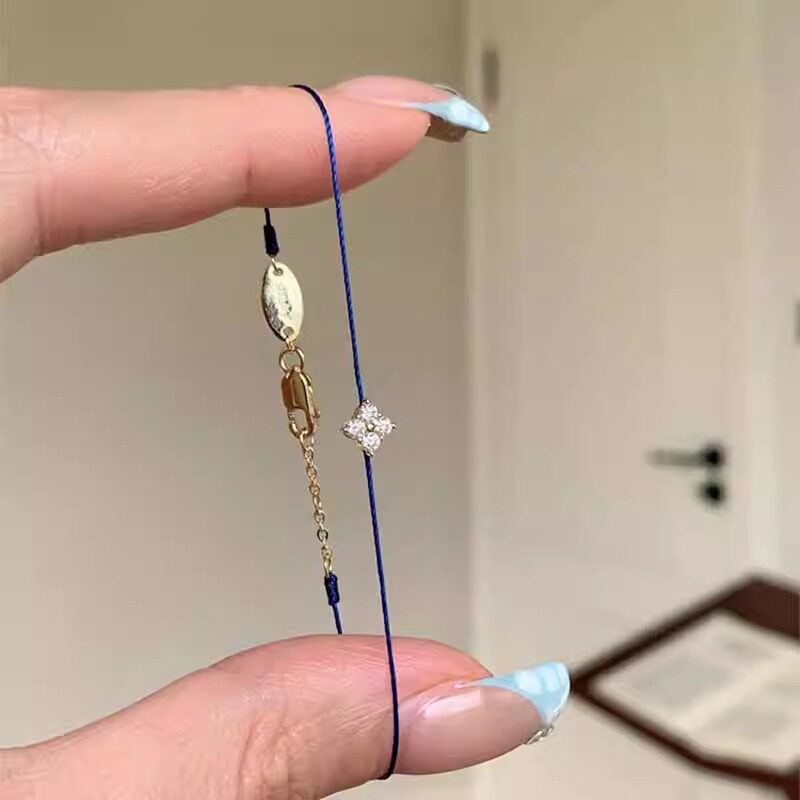 夏天叠戴蓝色显白四叶草手链轻奢小众精致高级感极细手绳简约手饰