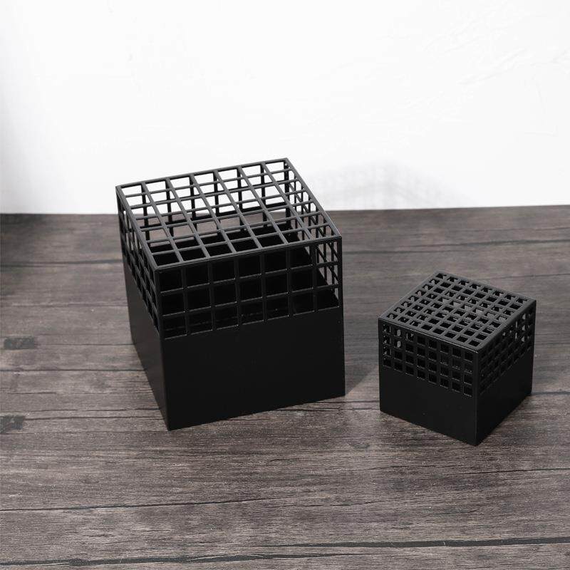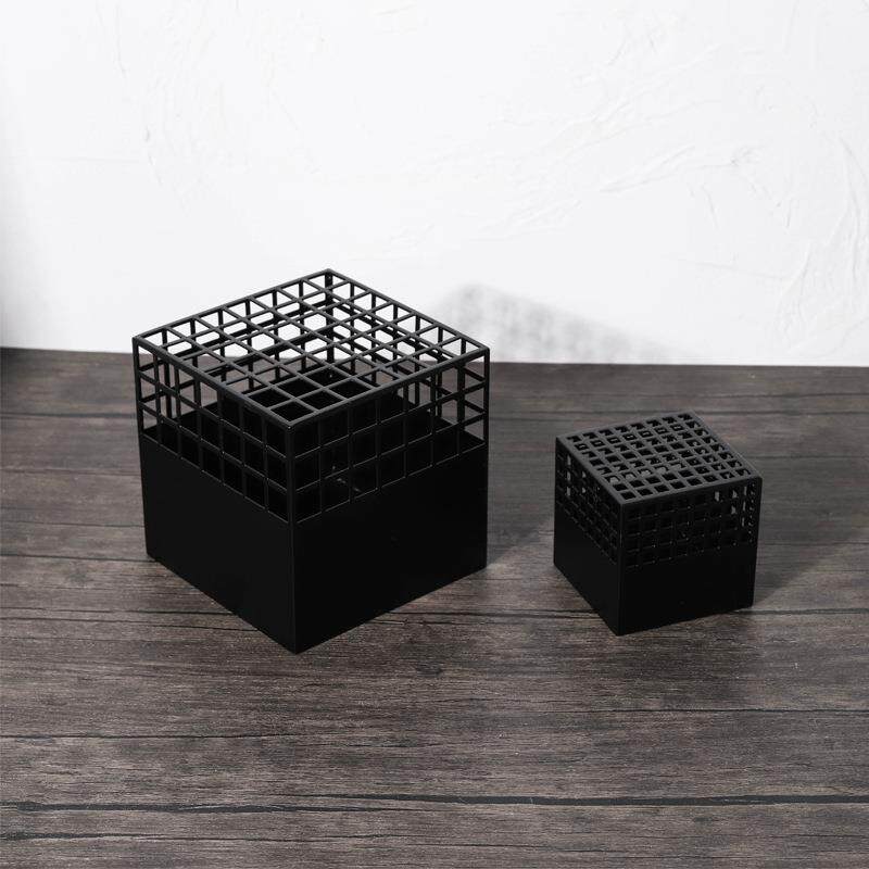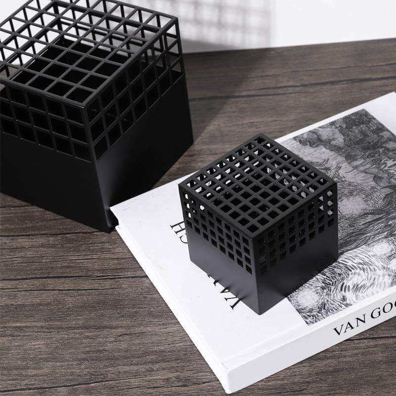 现代简约黑色网格镂空摆件家居装饰品样板间客厅几何金属方形摆设