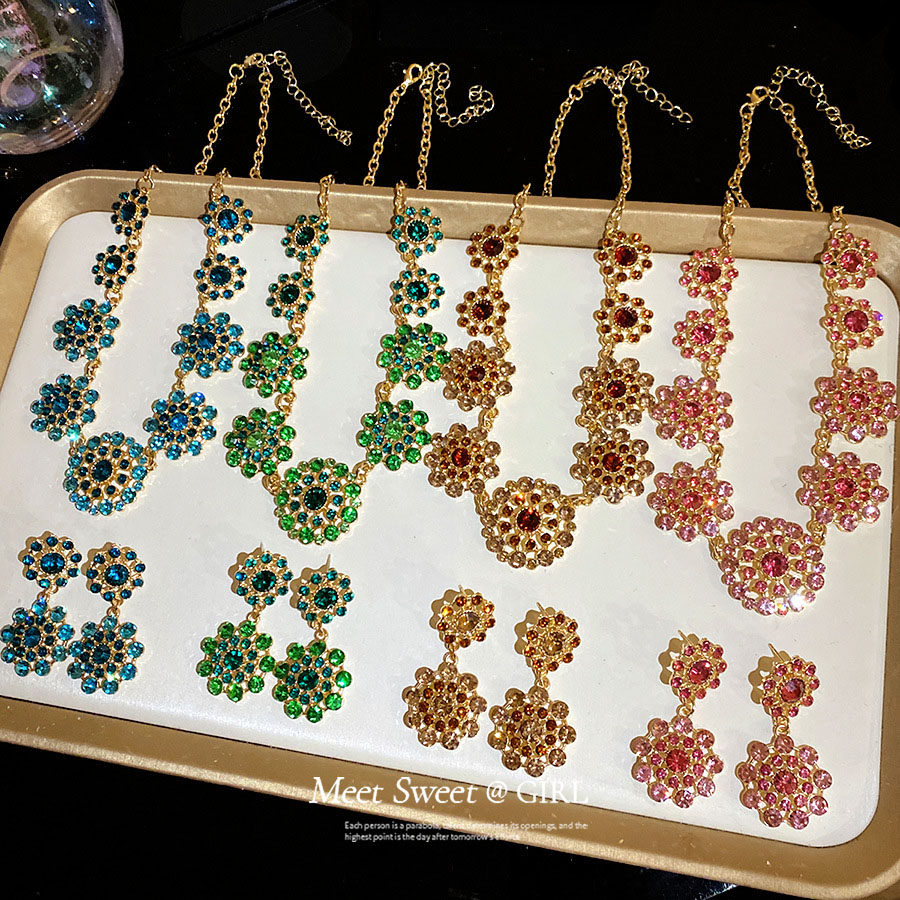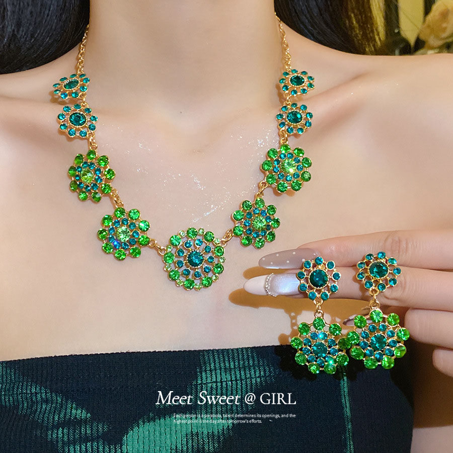 蓝色圆形镂空项链精致高级感轻奢锁骨链宴会礼服巨好看配饰女