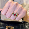 小红书同款轻奢优雅风红色绿宝石开口金戒指女高级感小众食指戒